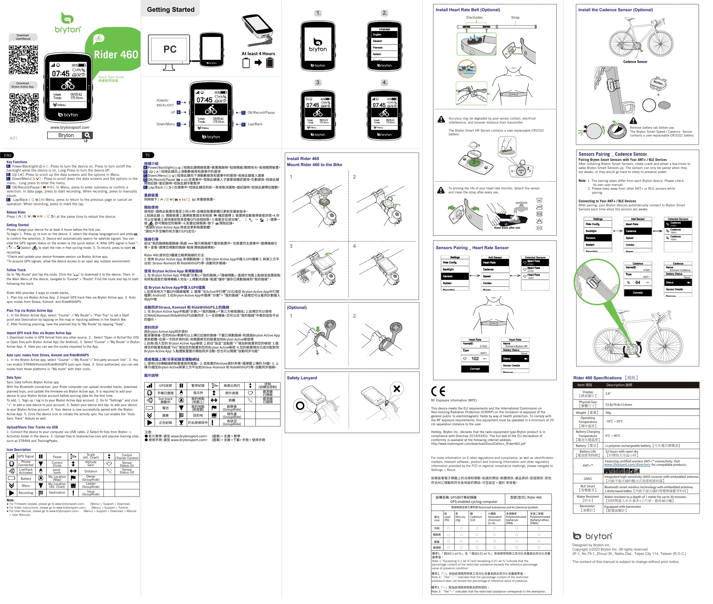 Retrouvez gratuitement la notice de l'appareil Rider 460 Bryton au format PDF.