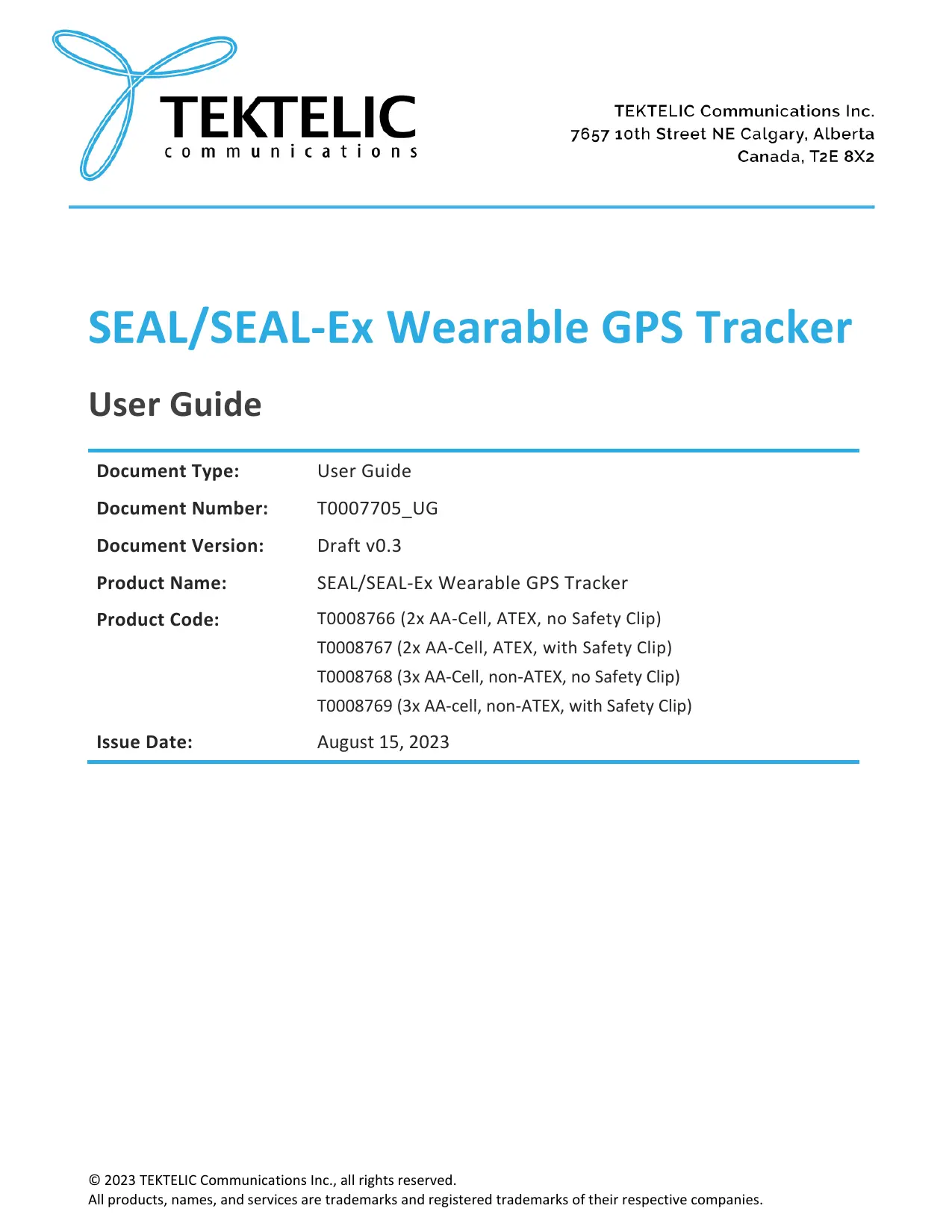 T0008769 - Tracker gps TEKTELIC - Notice d'utilisation et mode d'emploi gratuit