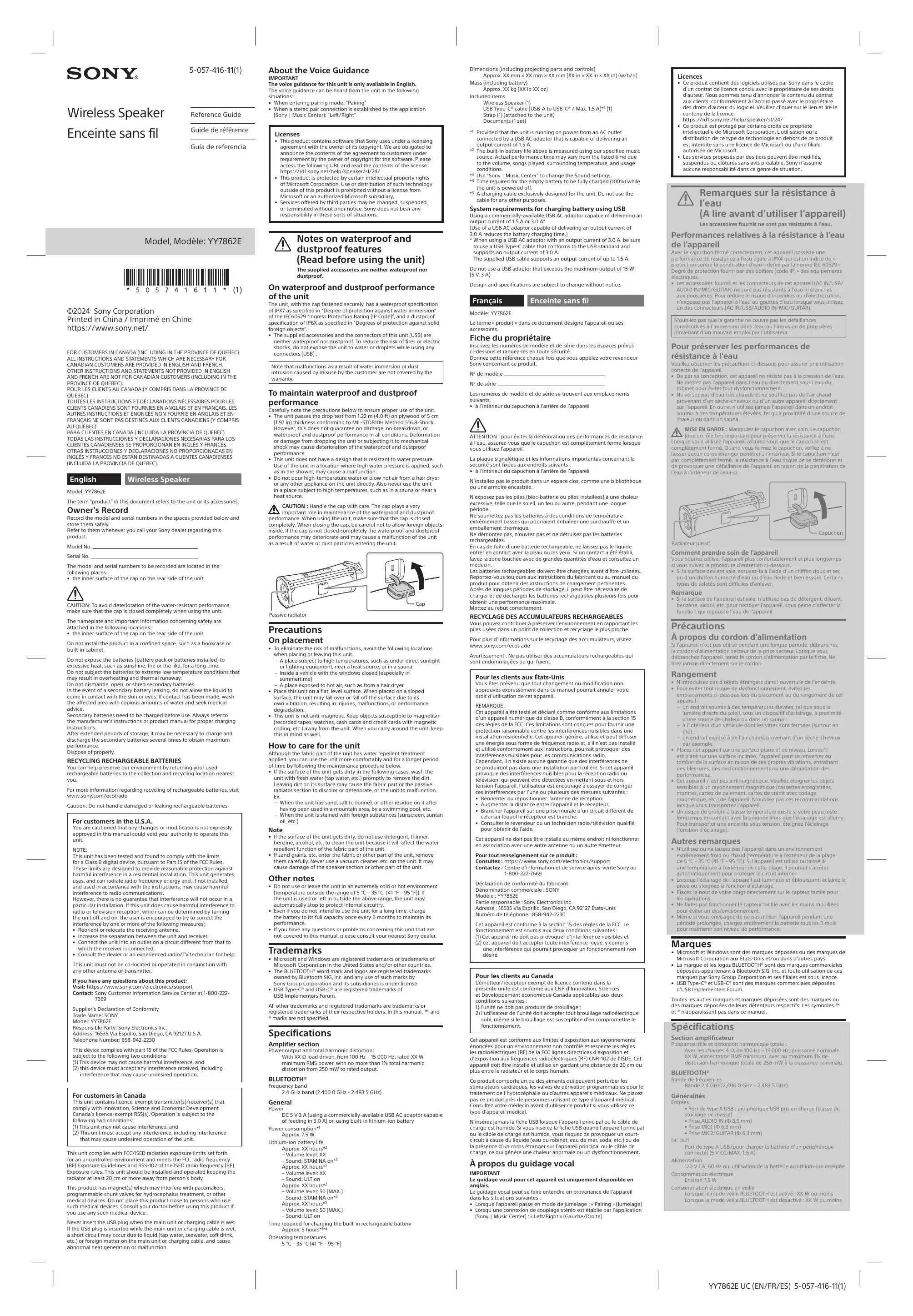 YY7862E - Enceinte bluetooth SONY - Notice d'utilisation et mode d'emploi gratuit