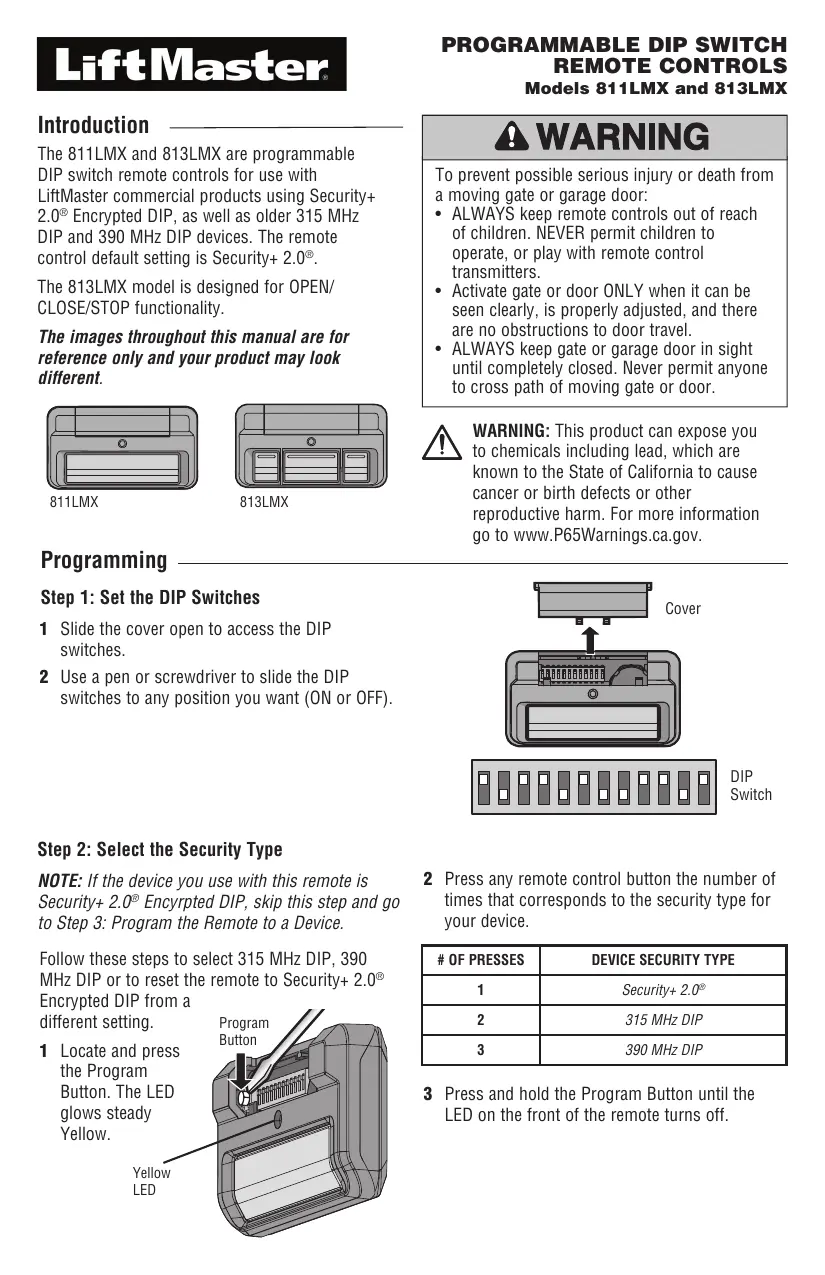 Retrouvez gratuitement la notice de l'appareil 811LMX LiftMaster au format PDF.