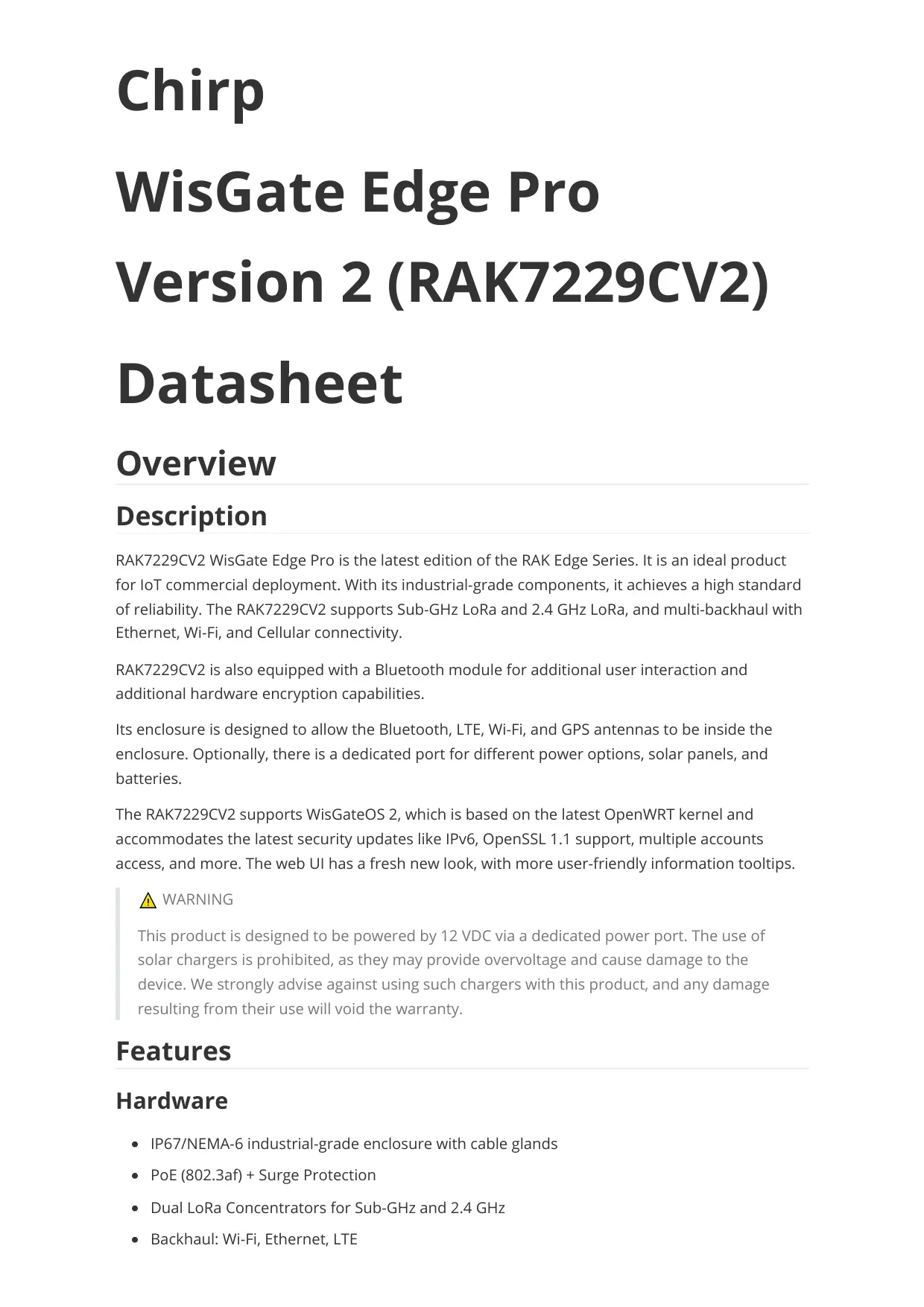 RAK7229CV2 - Produit IoT RAK - Notice d'utilisation et mode d'emploi gratuit