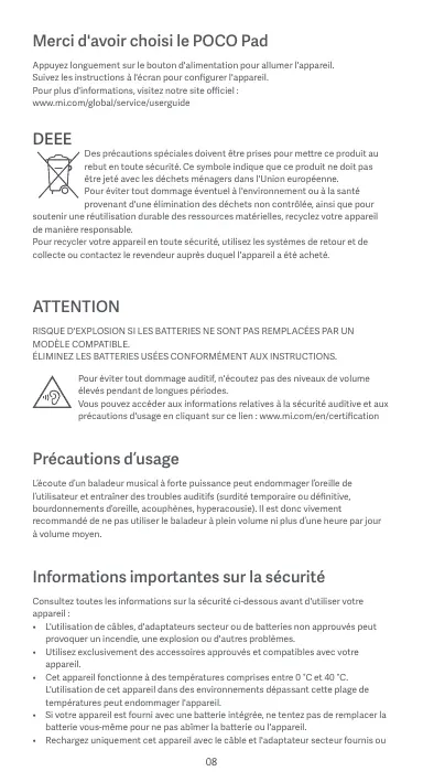 Retrouvez gratuitement la notice de l'appareil Pad POCO au format PDF.