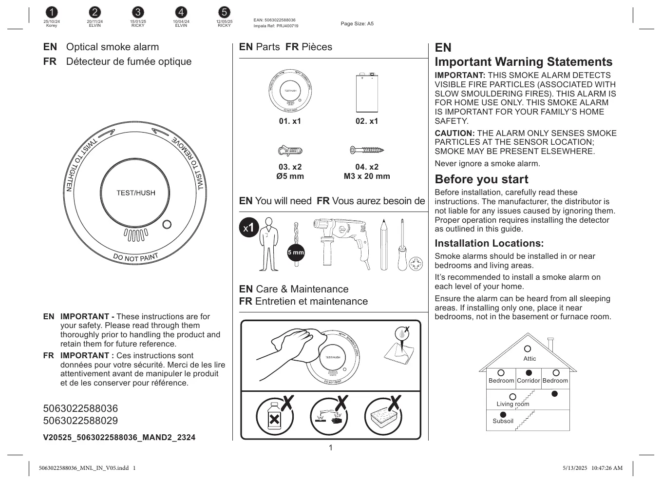 EN Optical smoke alarm FR Détecteur de fumée optique 20 Nor PANT EN IMPORTANT - These instructions are for your safety. Please read through them thoroughly prior to handling the product and retain them for future reference. FR IMPORTANT : Ces instructions sont données pour votre sécurité. Merci de les lire attentivement avant de manipuler le produit et de les conserver pour référence.