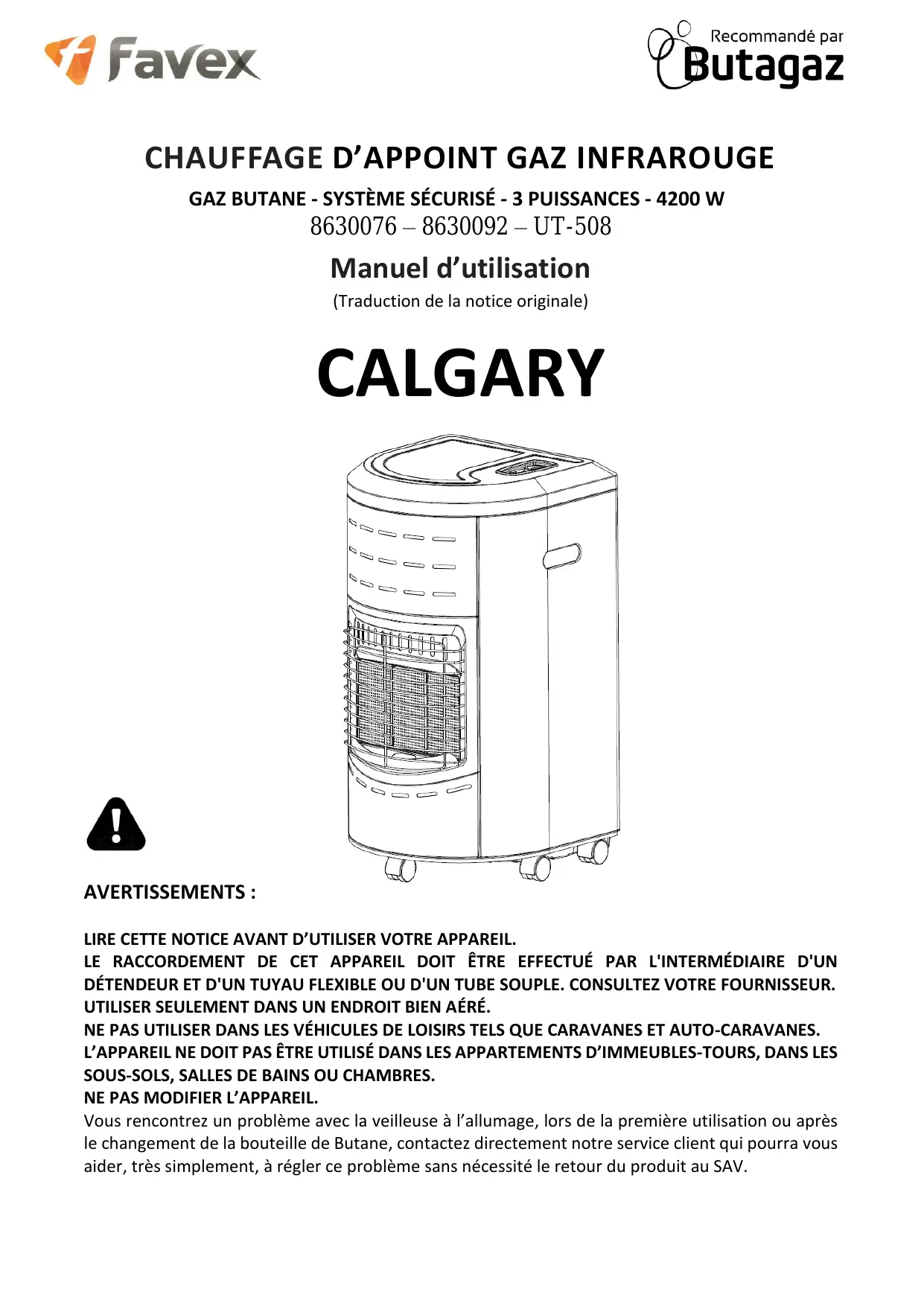 CALGARY - Chauffage d'appoint FAVEX - Notice d'utilisation et mode d'emploi gratuit