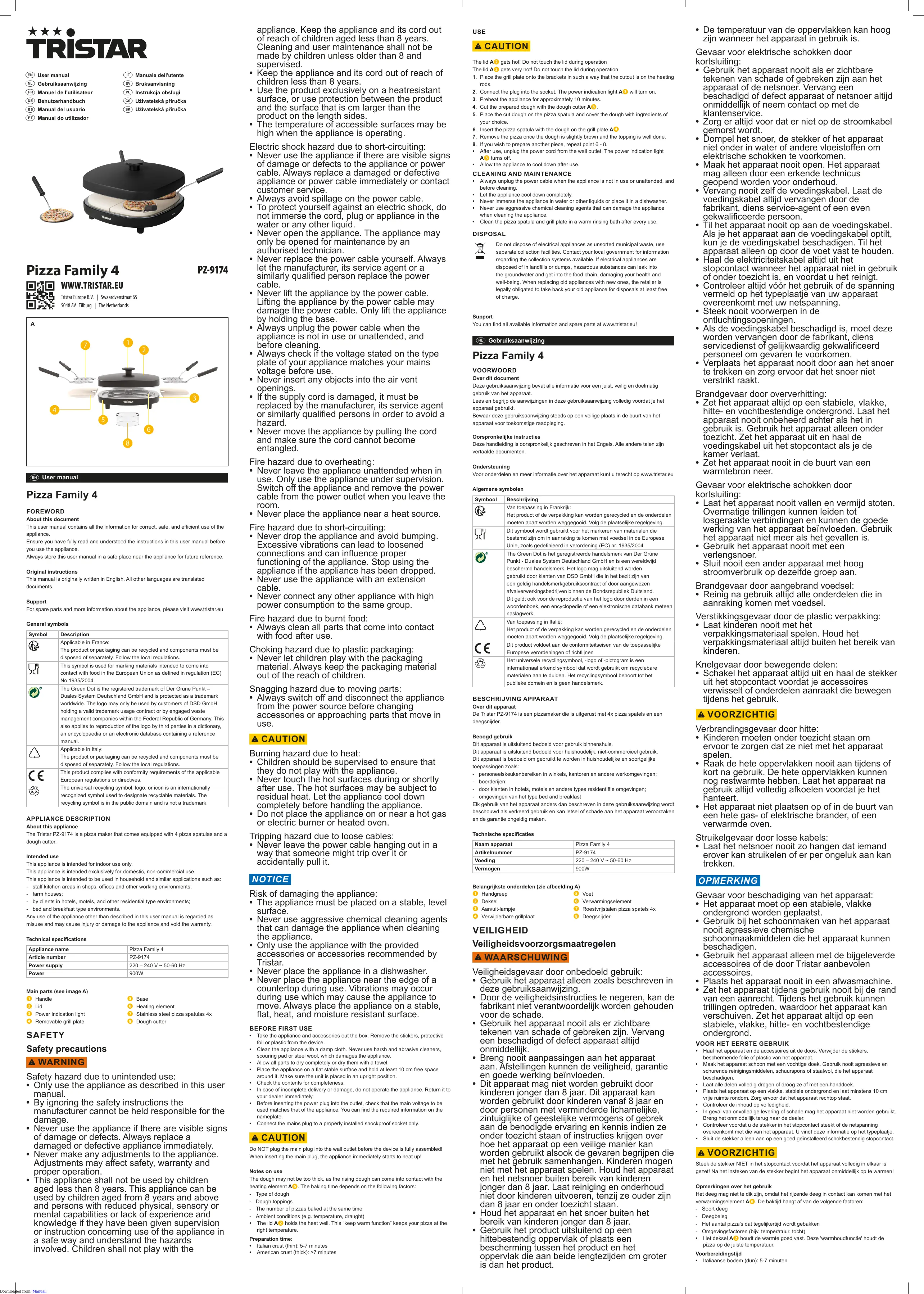 Pour les pièces de rechange et pour plus d'informations sur l'appareil, veuillez visiter www.tristar.eu.