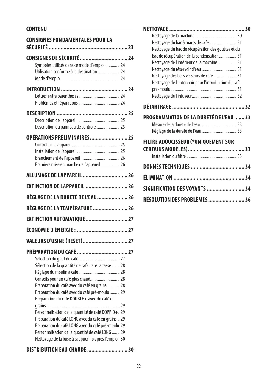 | Fonctions principales | Café, espresso, cappuccino, latte macchiato, mousse de lait |