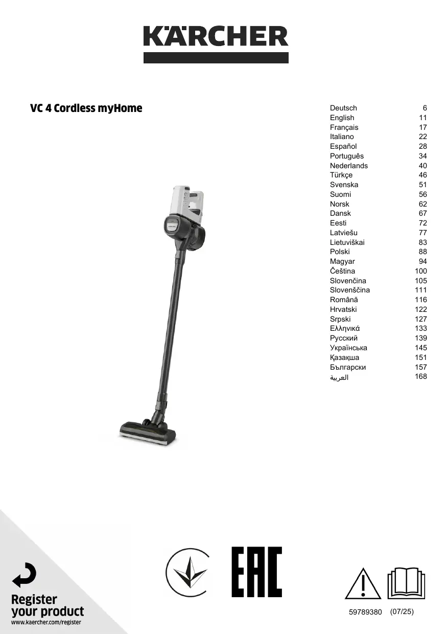 Retrouvez gratuitement la notice de l'appareil VC 4 Cordless myHome KARCHER au format PDF.