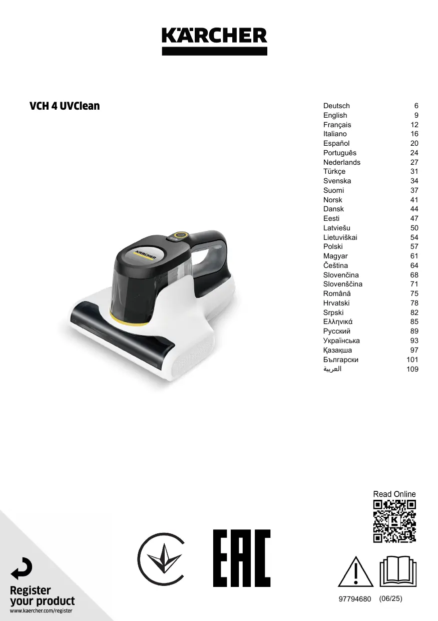 Retrouvez gratuitement la notice de l'appareil VCH 4 UVClean KARCHER au format PDF.