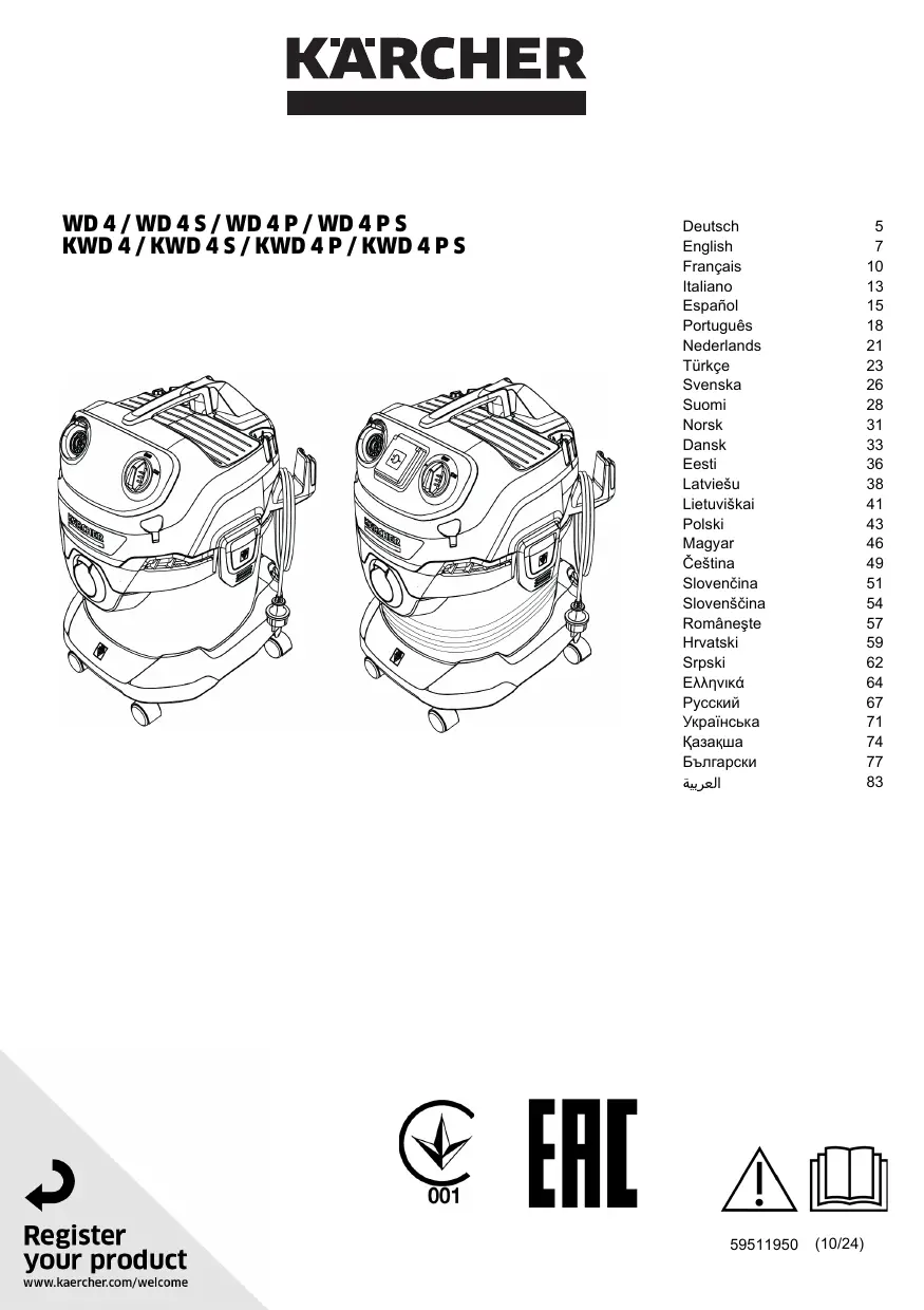 MODE D'EMPLOI WD 4 / WD 4 S / WD 4 P / WD 4 P S KWD 4 / KWD 4 S / KWD 4 P / KWD 4 P S KARCHER
