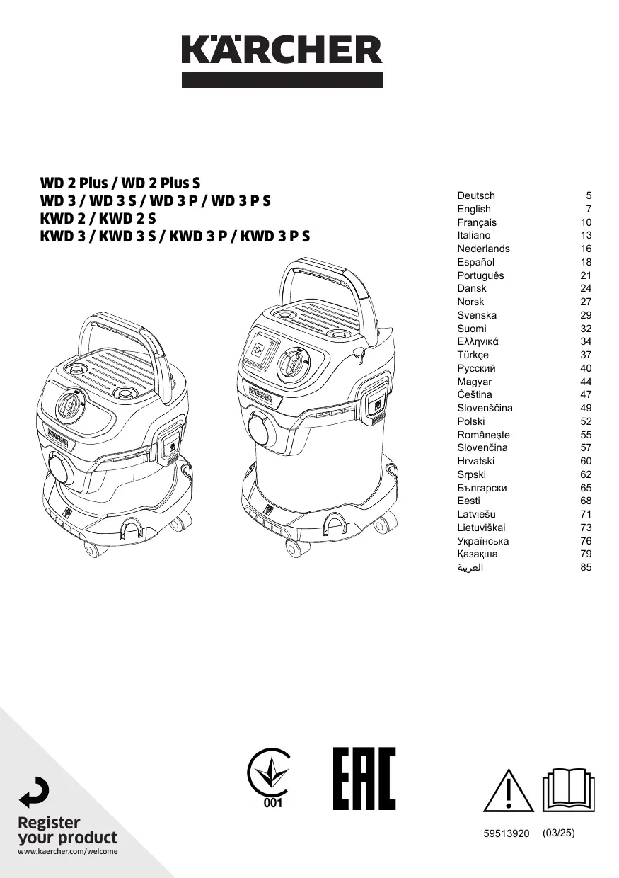 MODE D'EMPLOI WD 2 Plus / WD 2 Plus S WD 3 / WD 3 S / WD 3 P / WD 3 P S KWD 2 / KWD 2 S KWD 3 / KWD 3 S / KWD 3 P / KWD 3 P S KARCHER