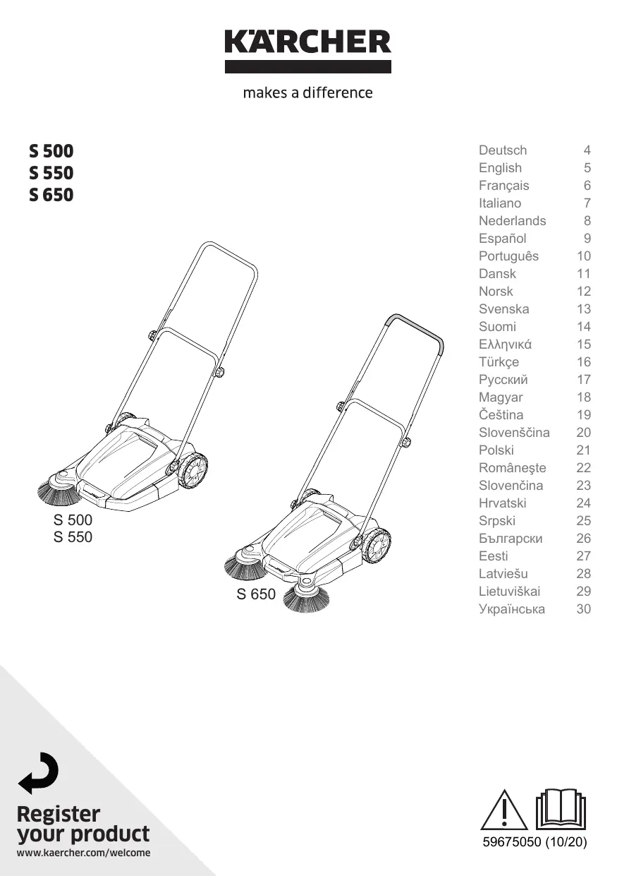 Téléchargez la notice de votre Balayeuse au format PDF gratuitement ! Retrouvez votre notice S500 S550 S650 - KARCHER et reprennez votre appareil électronique en main. Sur cette page sont publiés tous les documents nécessaires à l'utilisation de votre appareil S500 S550 S650 de la marque KARCHER.
