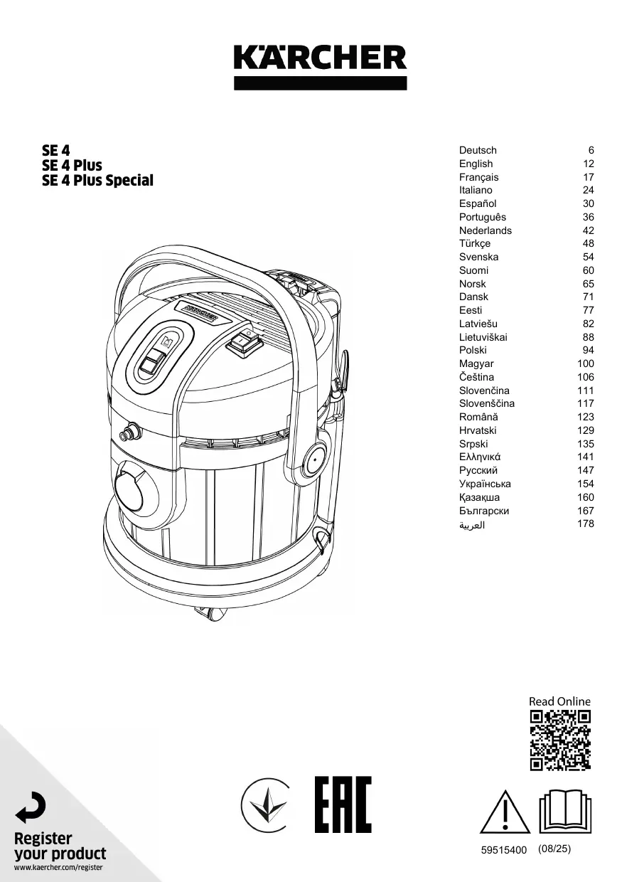 Retrouvez gratuitement la notice de l'appareil SE4 SE4 Plus SE4 Plus Special KARCHER au format PDF.