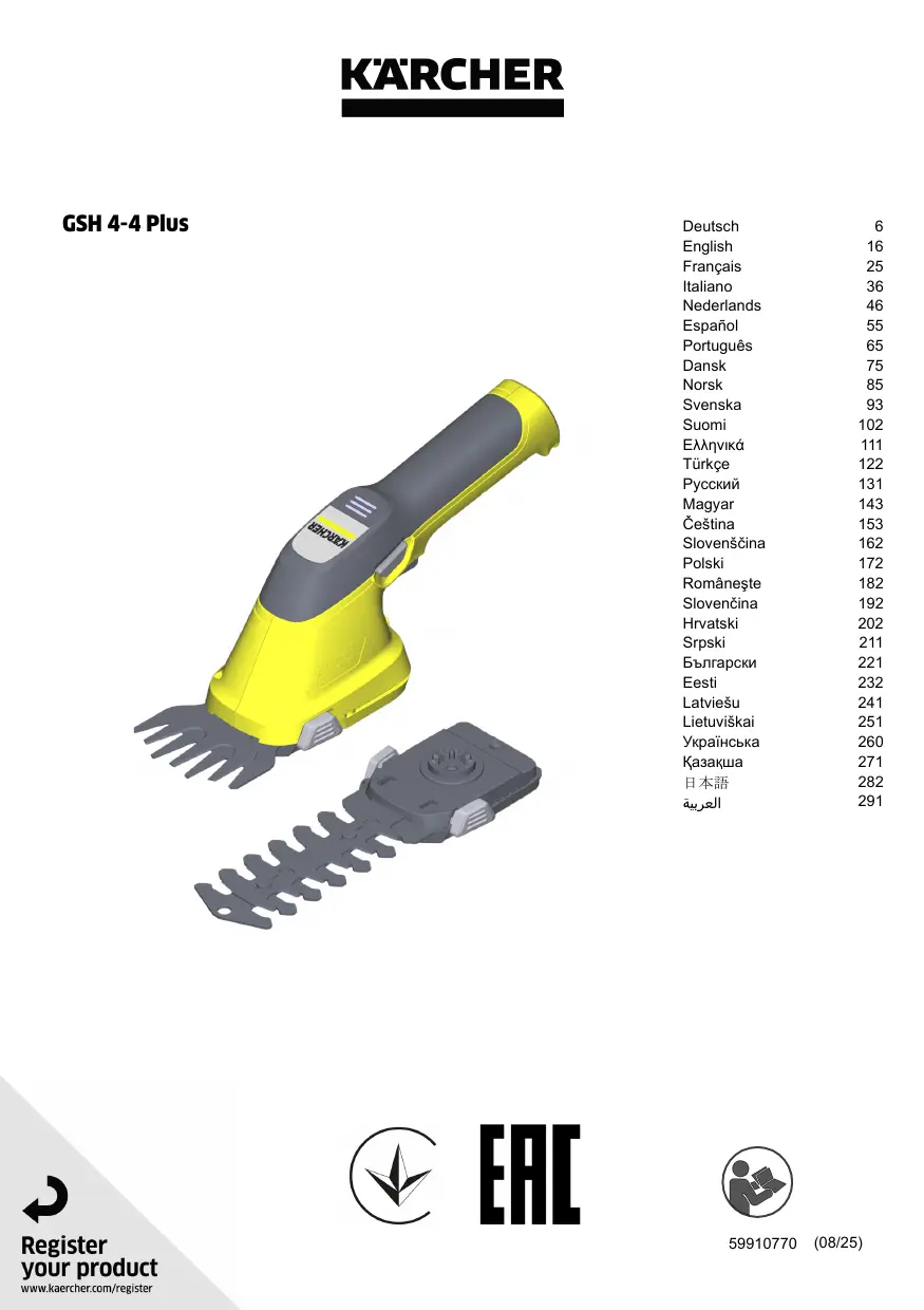 GSH 4-4 Plus - Outils de jardinage KARCHER - Notice d'utilisation et mode d'emploi gratuit