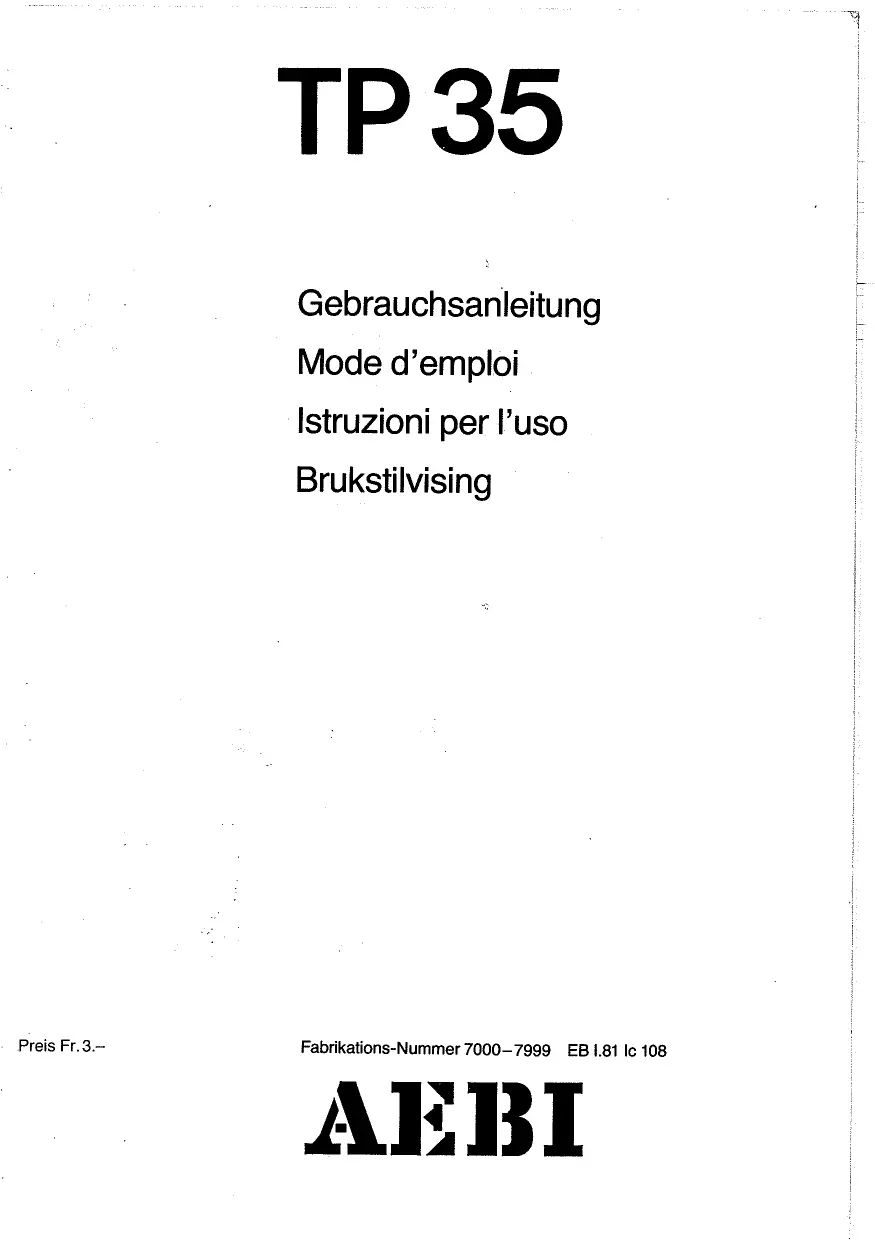Retrouvez gratuitement la notice de l'appareil TP 35 AEBI au format PDF.