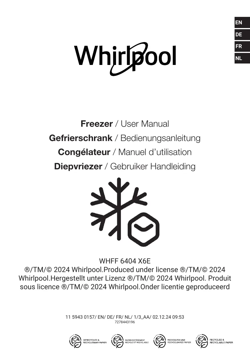 WHFF 6404 X6E - Congélateur WHIRLPOOL - Notice d'utilisation et mode d'emploi gratuit