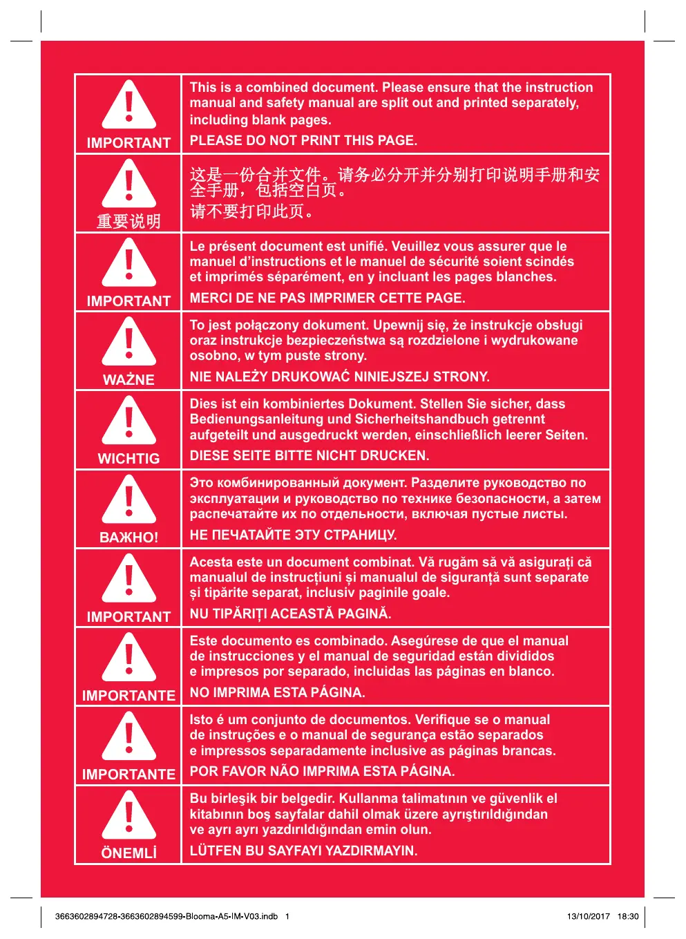 SE PÉARE DT AIT EEE MAIS HR AE Le présent document est unifié. Veuillez vous assurer que le manuel d'instructions et le manuel de sécurité soient scindés et imprimés séparément, en y incluant les pages blanches. IMPORTANT | MERCI DE NE PAS IMPRIMER CETTE PAGE.