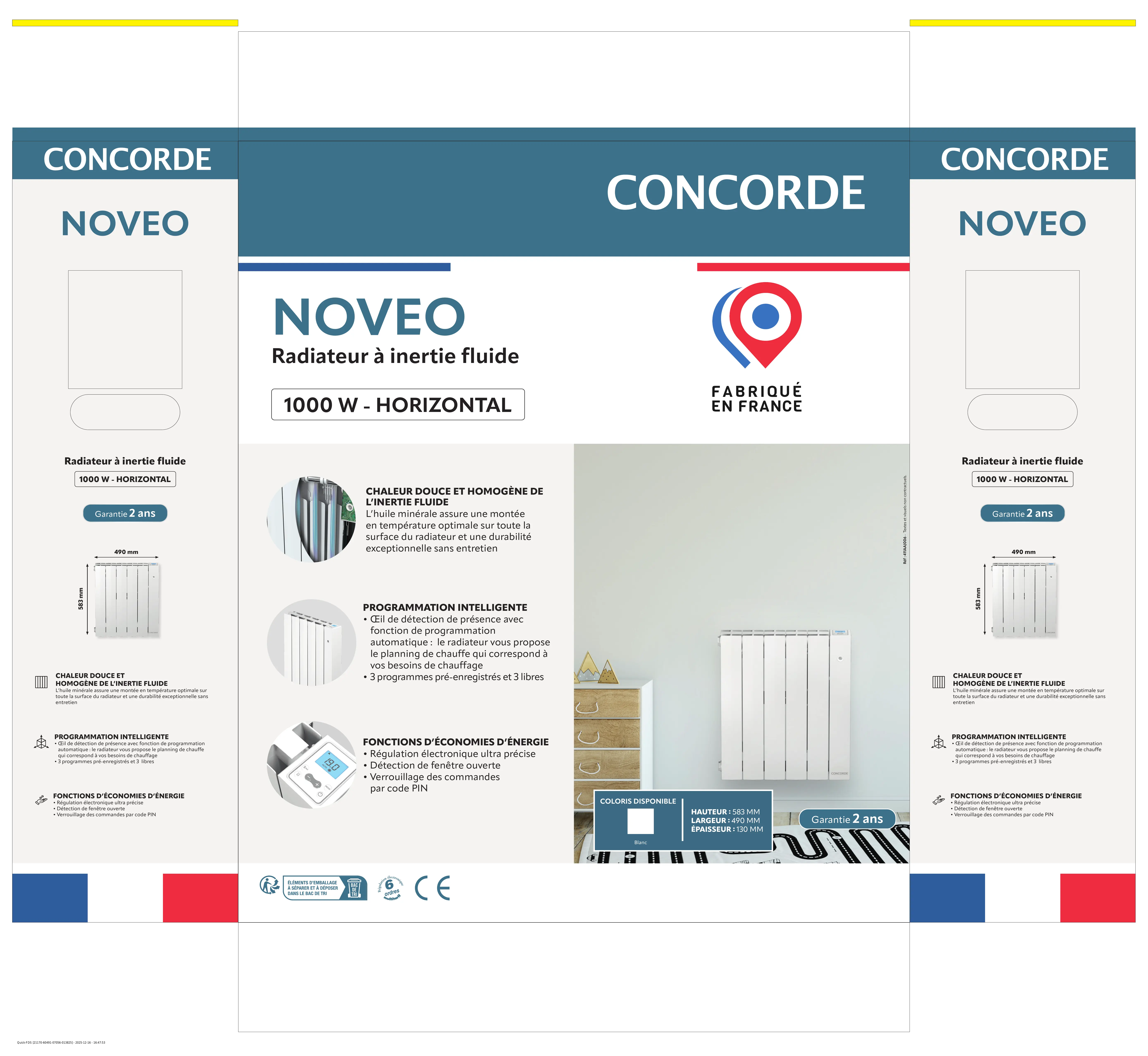 - Régulation électronique ultra précise - Détection de fenêtre ouverte - Verrouillage des commandes par code PIN PE .. électro, . ÉLÉMENTS D'EMBALLAGE a 6 ee À SÉPARER ET À DÉPOSER ? : DANS LE BAC DE TRI ordres COLORIS DISPONIBLE Blanc CONCORDE FABRIQUÉ EN FRANCE HAUTEUR : 583 MM LARGEUR : 730 MM ÉPAISSEUR : 130 MM CONCORDE Réf : 411AAJ007 - Textes et visuels non contractuels.