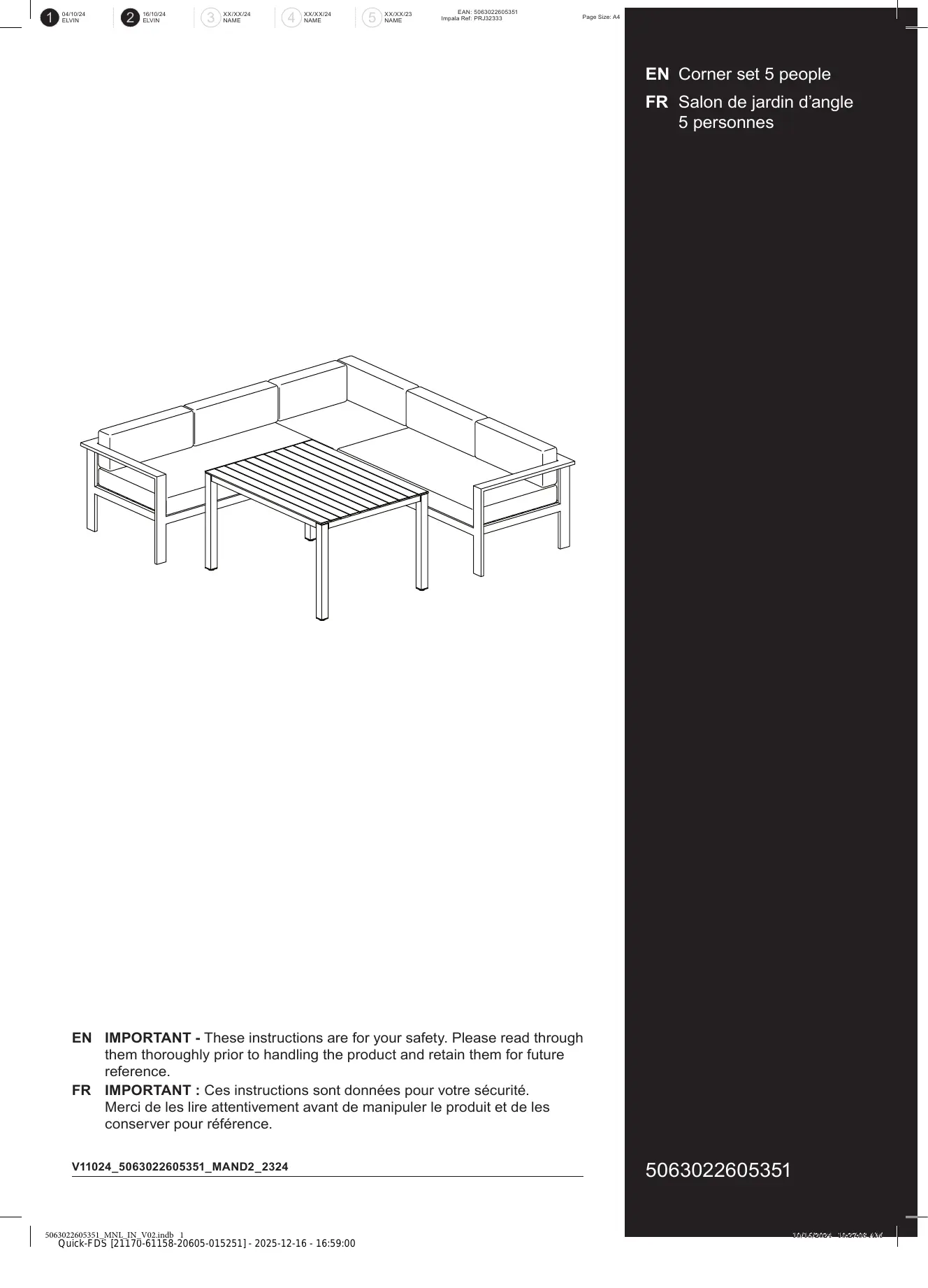 MODE D'EMPLOI Salon de jardin d'angle 5 personnes BLOOMA