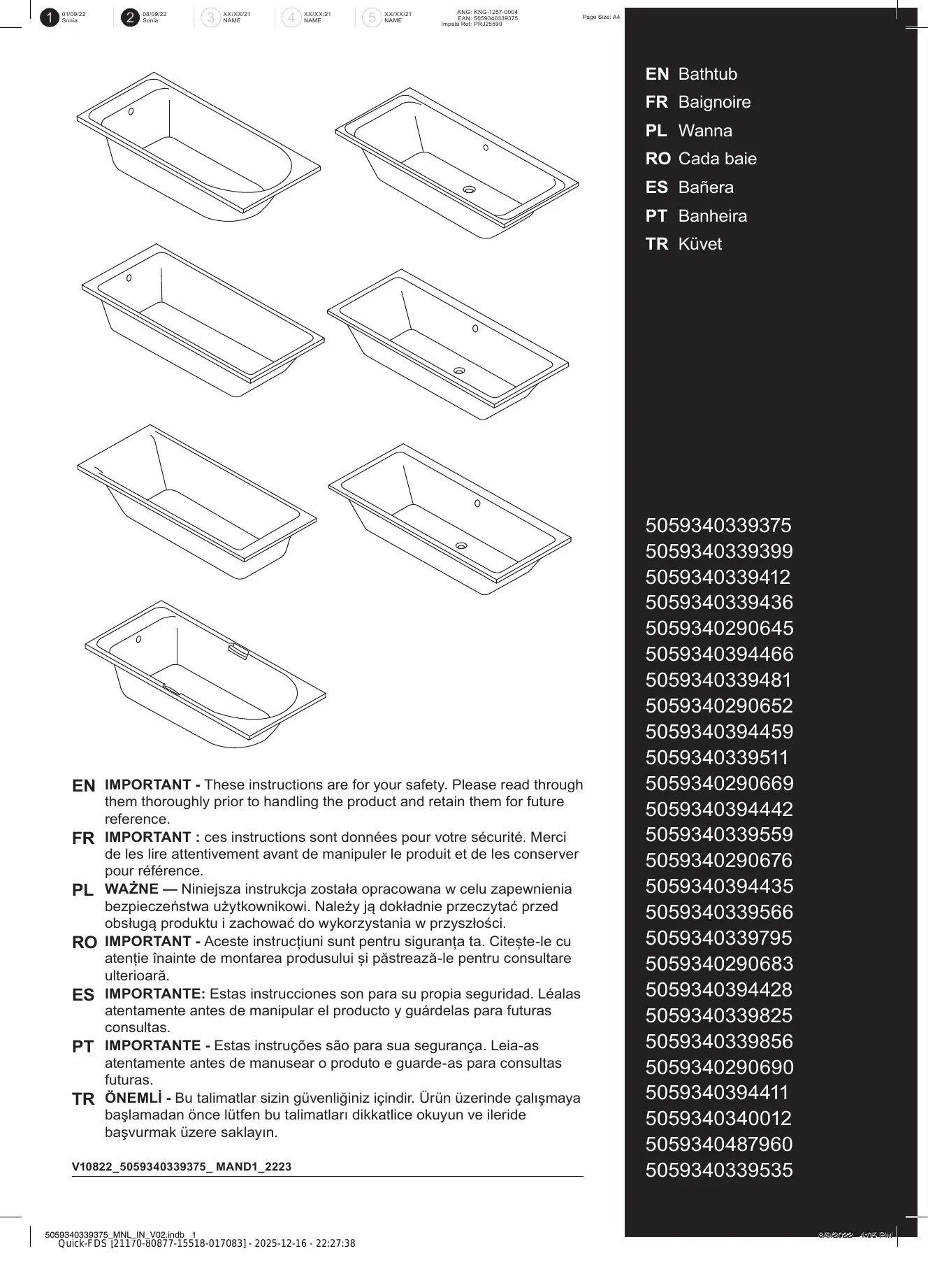 Ionas - Baignoire COOKE & LEWIS - Notice d'utilisation et mode d'emploi gratuit