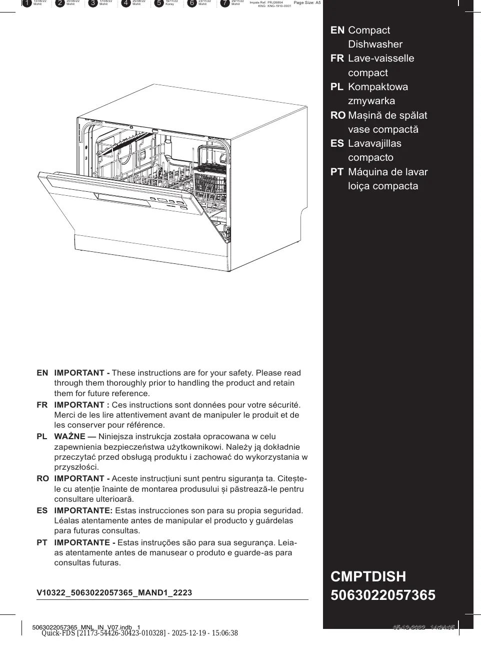 Retrouvez gratuitement la notice de l'appareil Lave vaisselle compact COOKE & LEWIS au format PDF.
