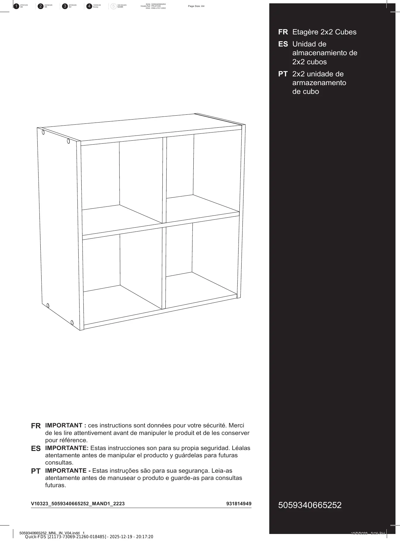 | Type de produit | Cube de rangement |