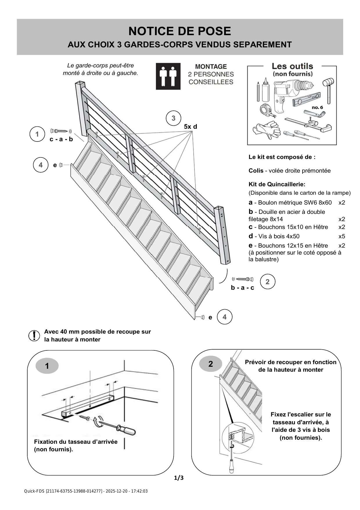 Téléchargez la notice de votre Escalier droit au format PDF gratuitement ! Retrouvez votre notice FINEAS - BRICO DEPOT et reprennez votre appareil électronique en main. Sur cette page sont publiés tous les documents nécessaires à l'utilisation de votre appareil FINEAS de la marque BRICO DEPOT.