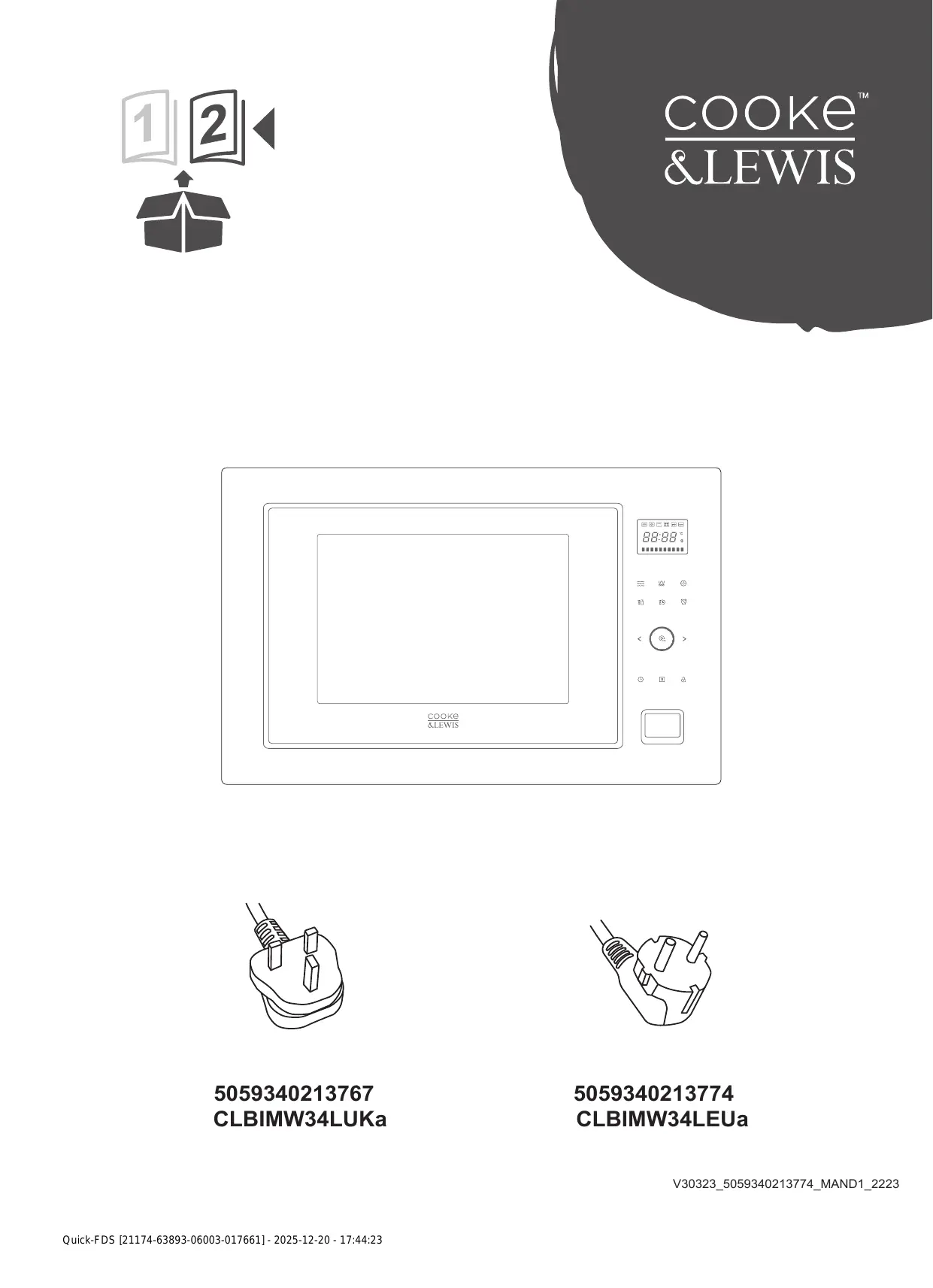 5059340213767-CLBIMW34LUKa / 5059340213774-CLBIMW34LEUa - Combi Four Micro-ondes grill encastrable COOKE & LEWIS - Notice d'utilisation et mode d'emploi gratuit