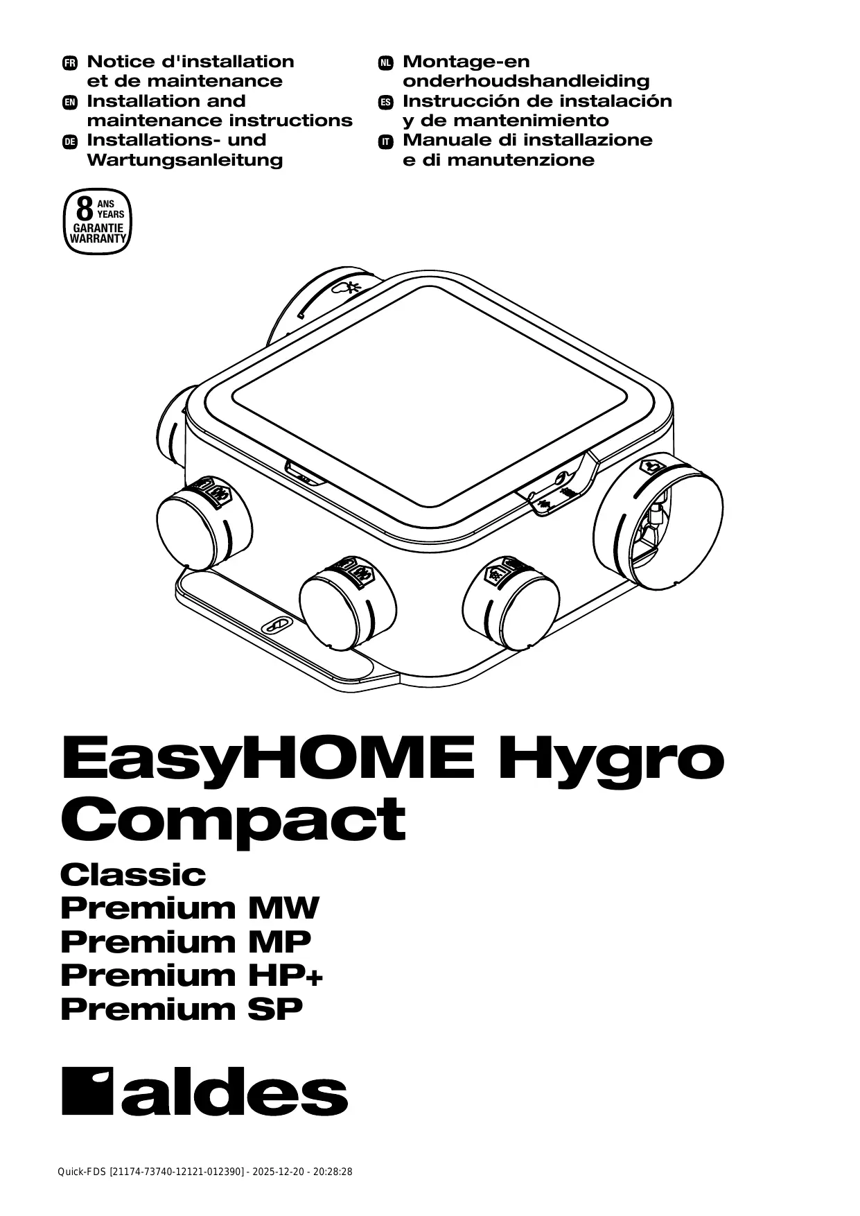 Retrouvez gratuitement la notice de l'appareil EasyHome ALDES au format PDF.