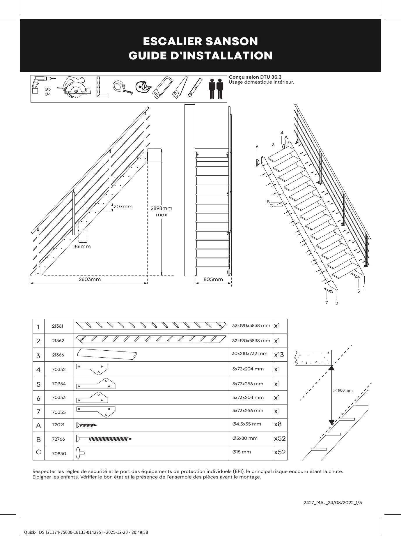 Sanson - Escalier droit BRICO DEPOT - Notice d'utilisation et mode d'emploi gratuit