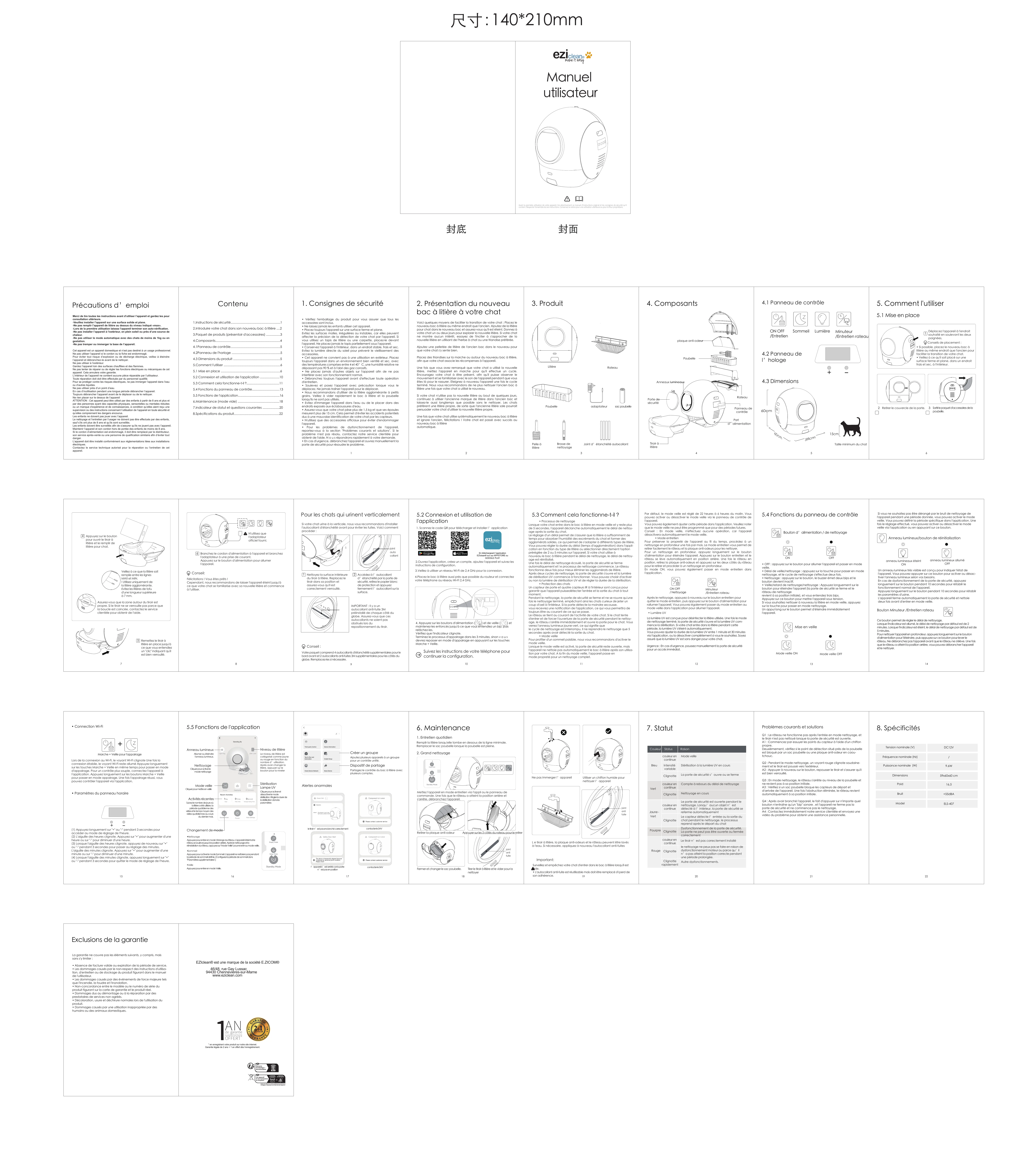 CATBOTK10I - Litière robot autonettoyante EZICLEAN - Notice d'utilisation et mode d'emploi gratuit