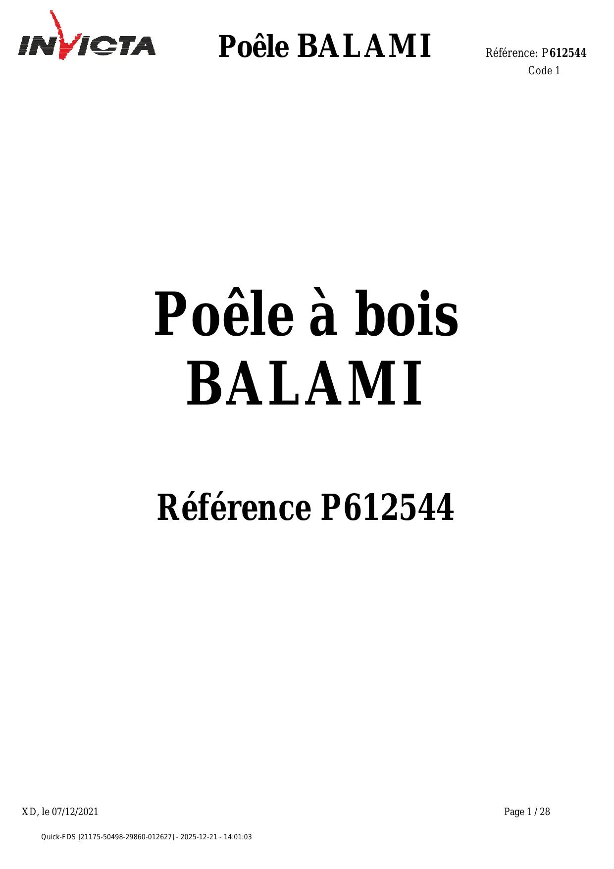 BALAMI - Poêle à bois INVICTA - Notice d'utilisation et mode d'emploi gratuit