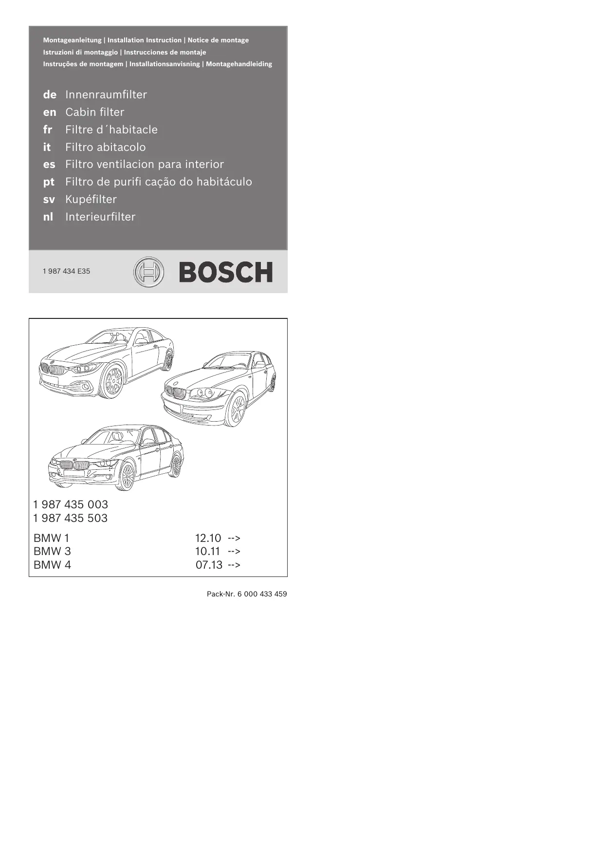 BMW 1/BMW 3/BMW 4 - Filtre d'habitacle BOSCH - Notice d'utilisation et mode d'emploi gratuit