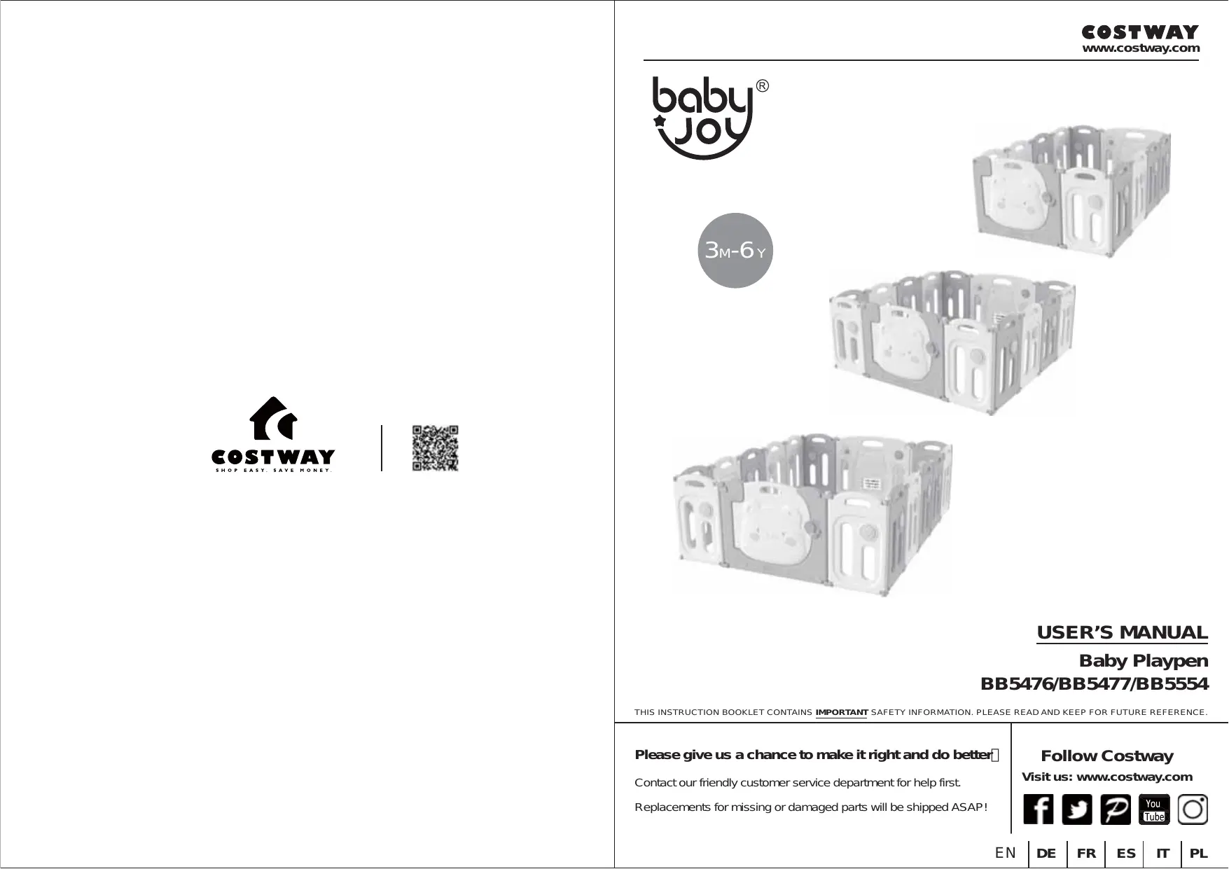 BB5476/BB5477/BB5554 - Parc bébé COSTWAY - Notice d'utilisation et mode d'emploi gratuit