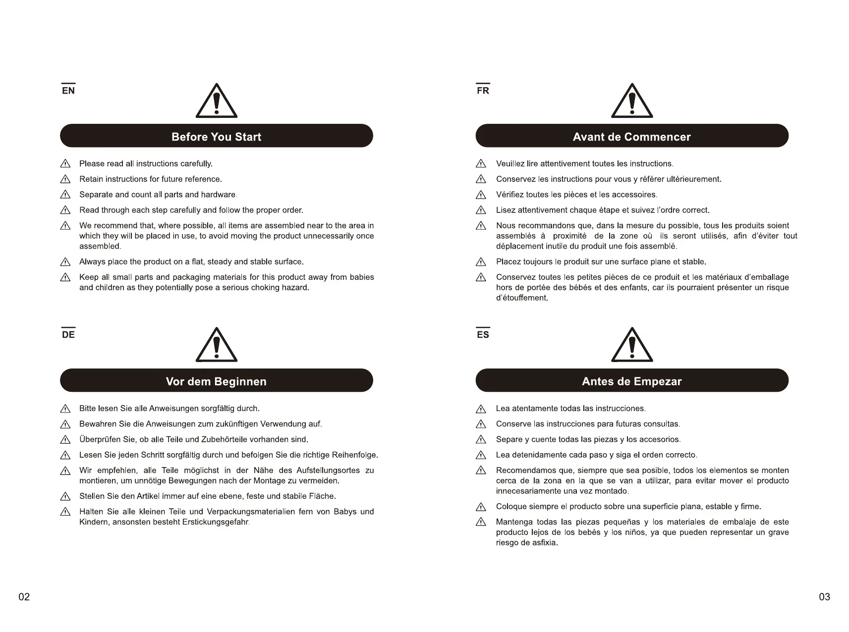 Conservez toutes les petites pieces de ce produit et les matériaux d'emballage hors de portée des bébés et des enfants, car ils pourraientprésenter un risque d'étouffement.