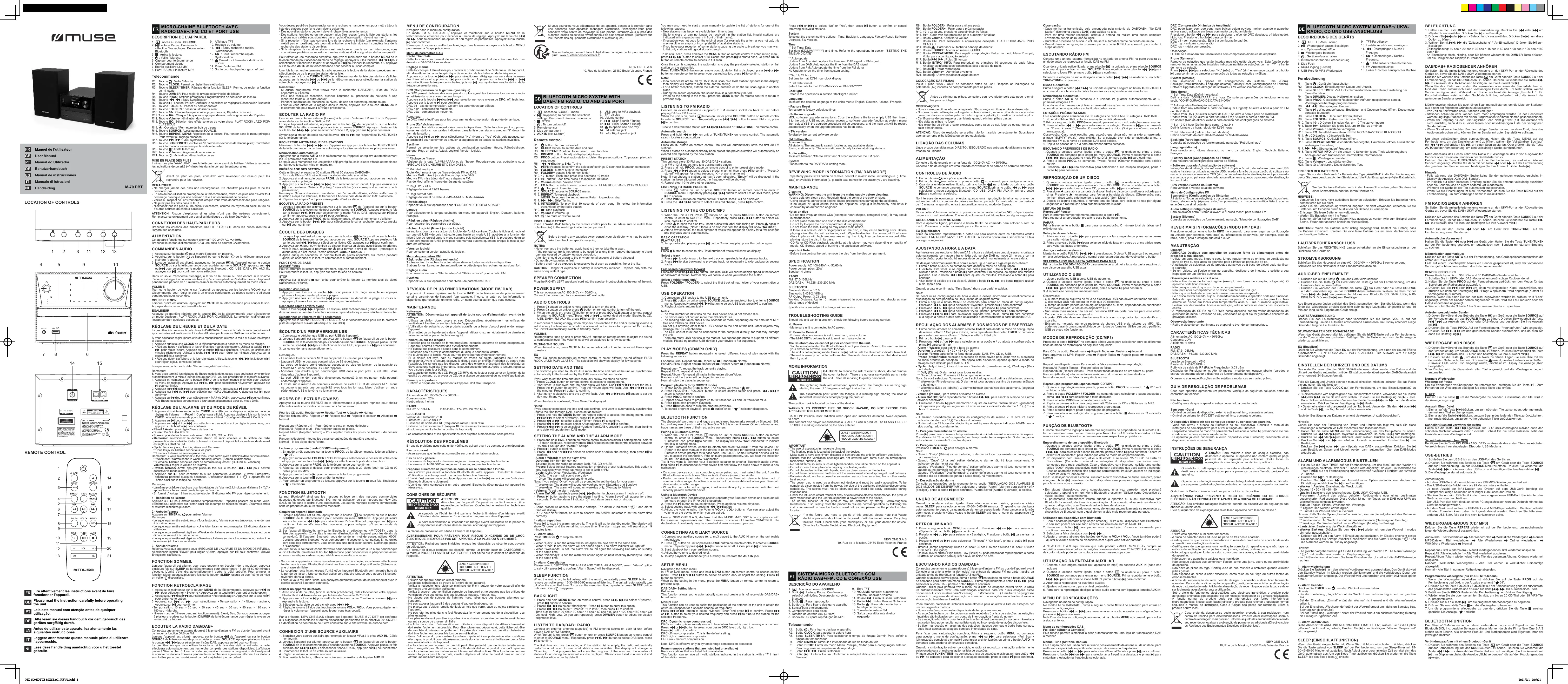 Retrouvez gratuitement la notice de l'appareil M70DBT MUSE au format PDF.