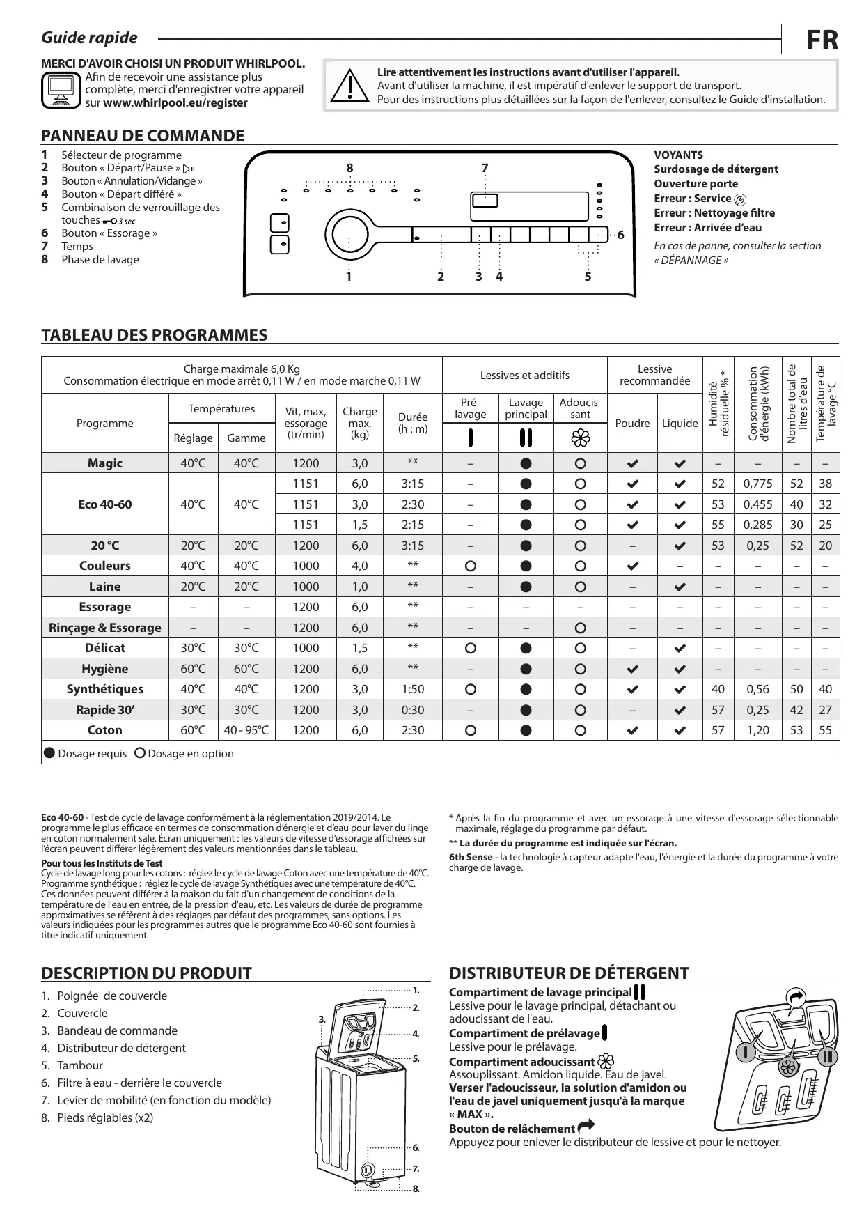 TDLR6242SFRN - Lave-linge WHIRLPOOL - Notice d'utilisation et mode d'emploi gratuit