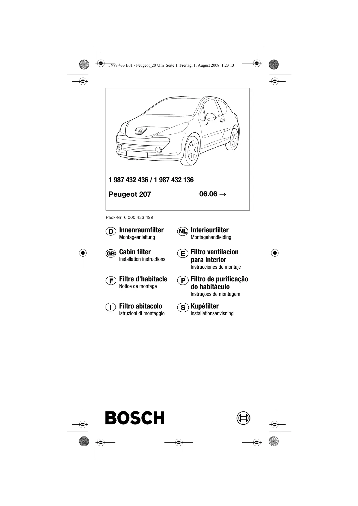 1 987 432 436 / 1 987 432 136 - Filtre d'habitacle BOSCH - Notice d'utilisation et mode d'emploi gratuit