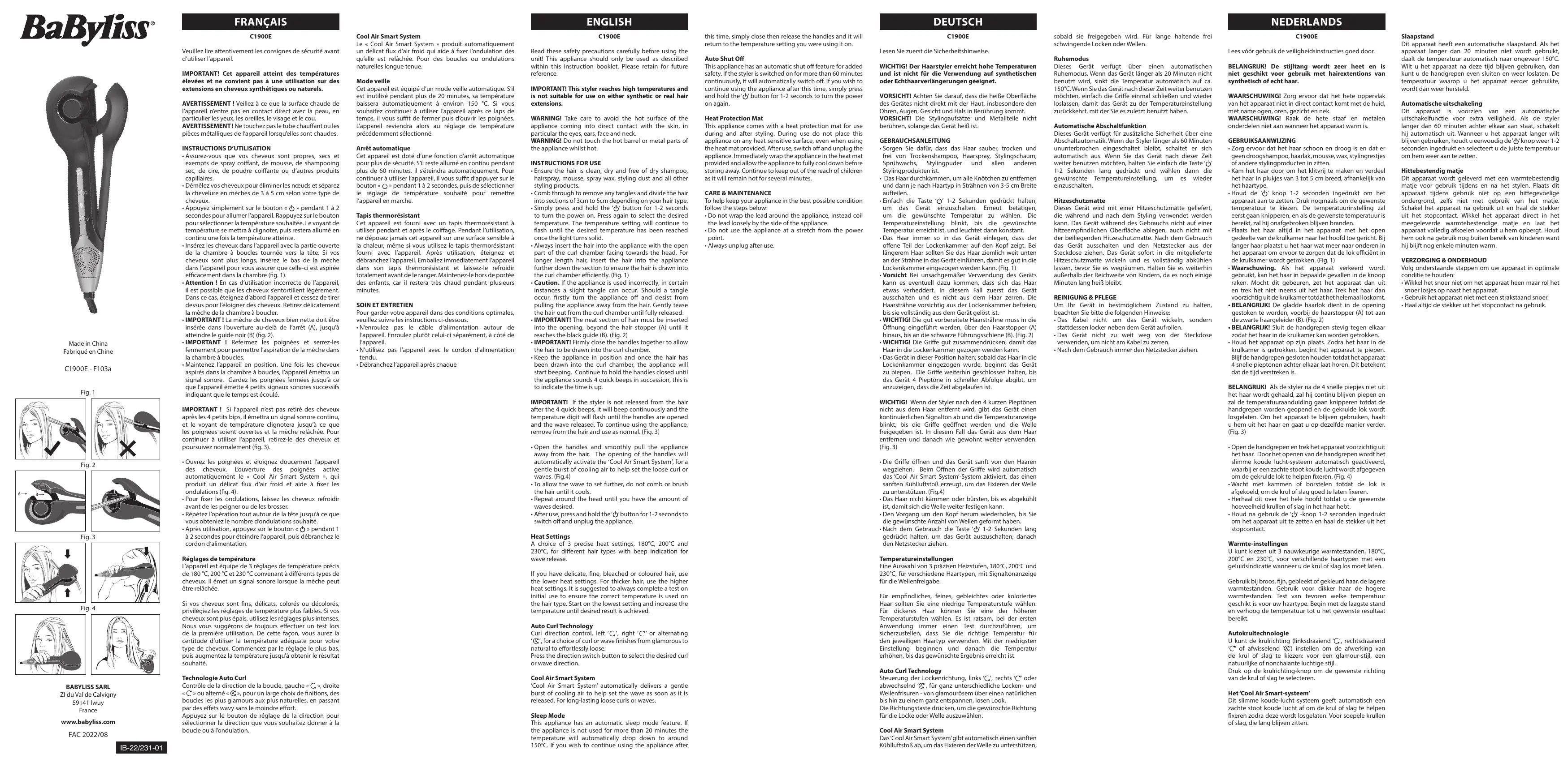C1900E - Fer à friser BABYLISS - Notice d'utilisation et mode d'emploi gratuit