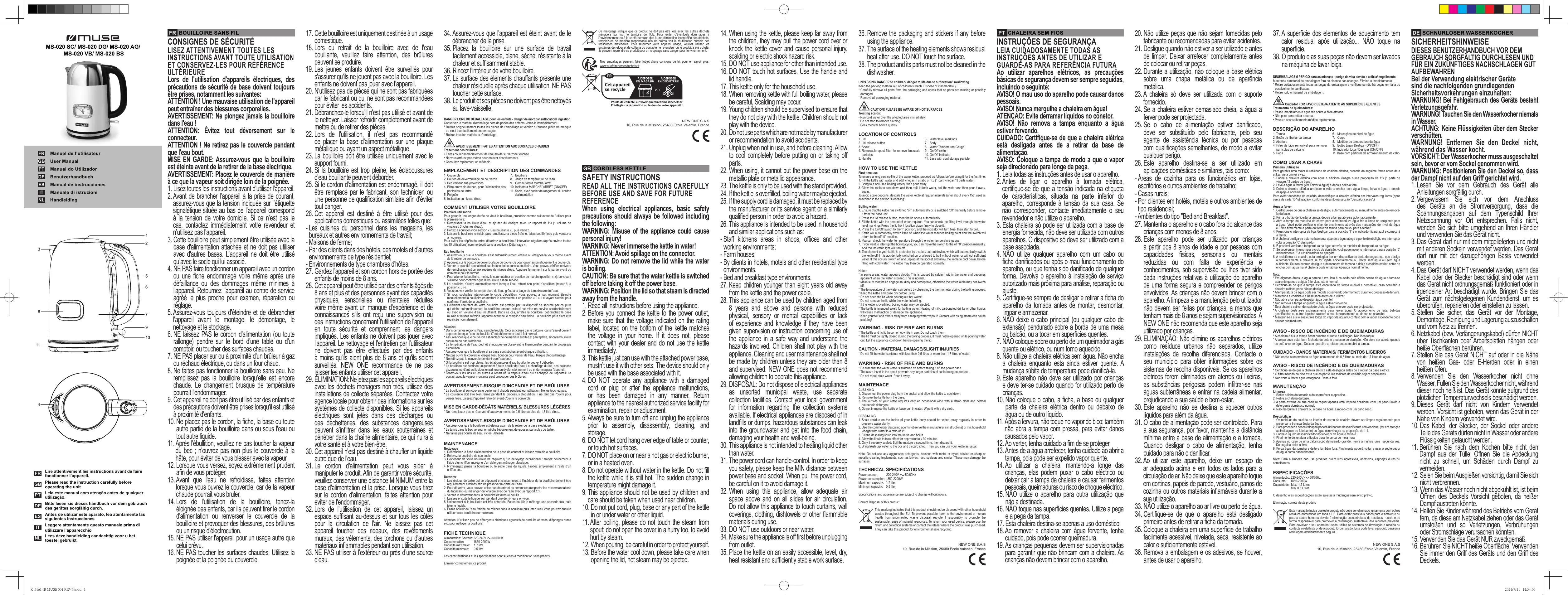 MS020SC - - Bouilloire MUSE - Notice d'utilisation et mode d'emploi gratuit