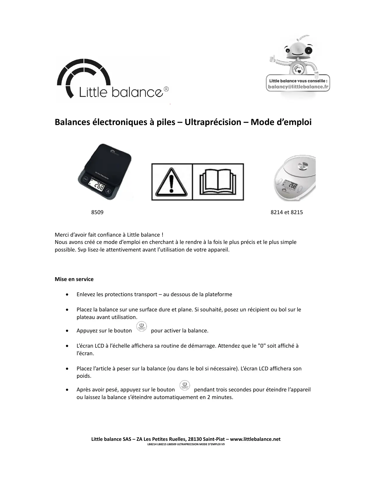 Retrouvez gratuitement la notice de l'appareil 8509 - 8214 - 8215 LITTLE BALANCE au format PDF.