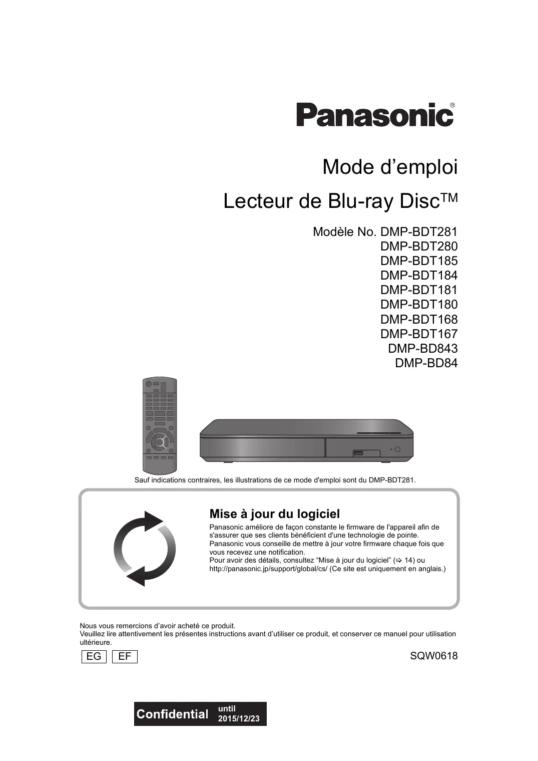 DMPBDT281 - DMPBDT280 - DMPBDT185 - DMPBDT184 - DMPBDT181 - DMPBDT180 - DMPBDT168 - DMPBDT167 - DMPBD843 - DMPBD84 - Lecteur blu-ray PANASONIC - Notice d'utilisation et mode d'emploi gratuit