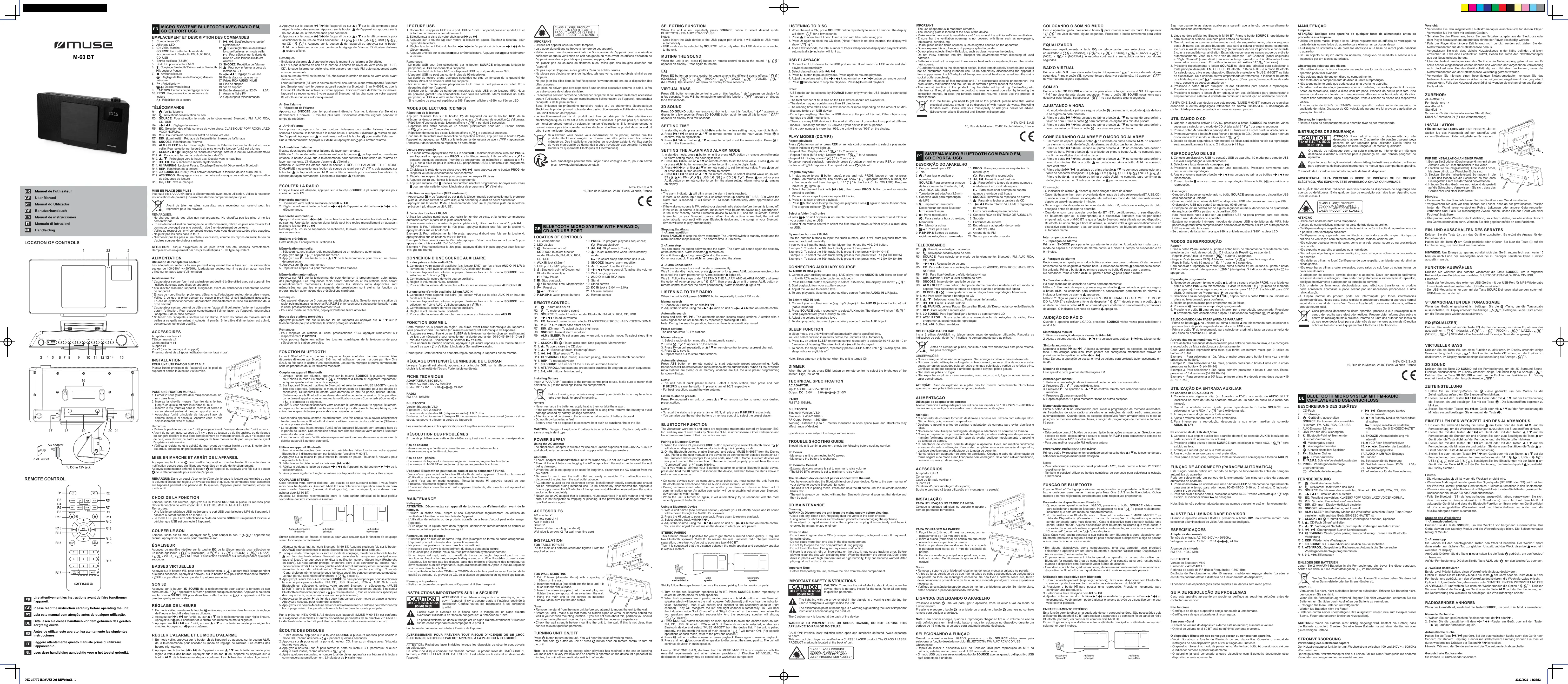 Retrouvez gratuitement la notice de l'appareil M60BT MUSE au format PDF.