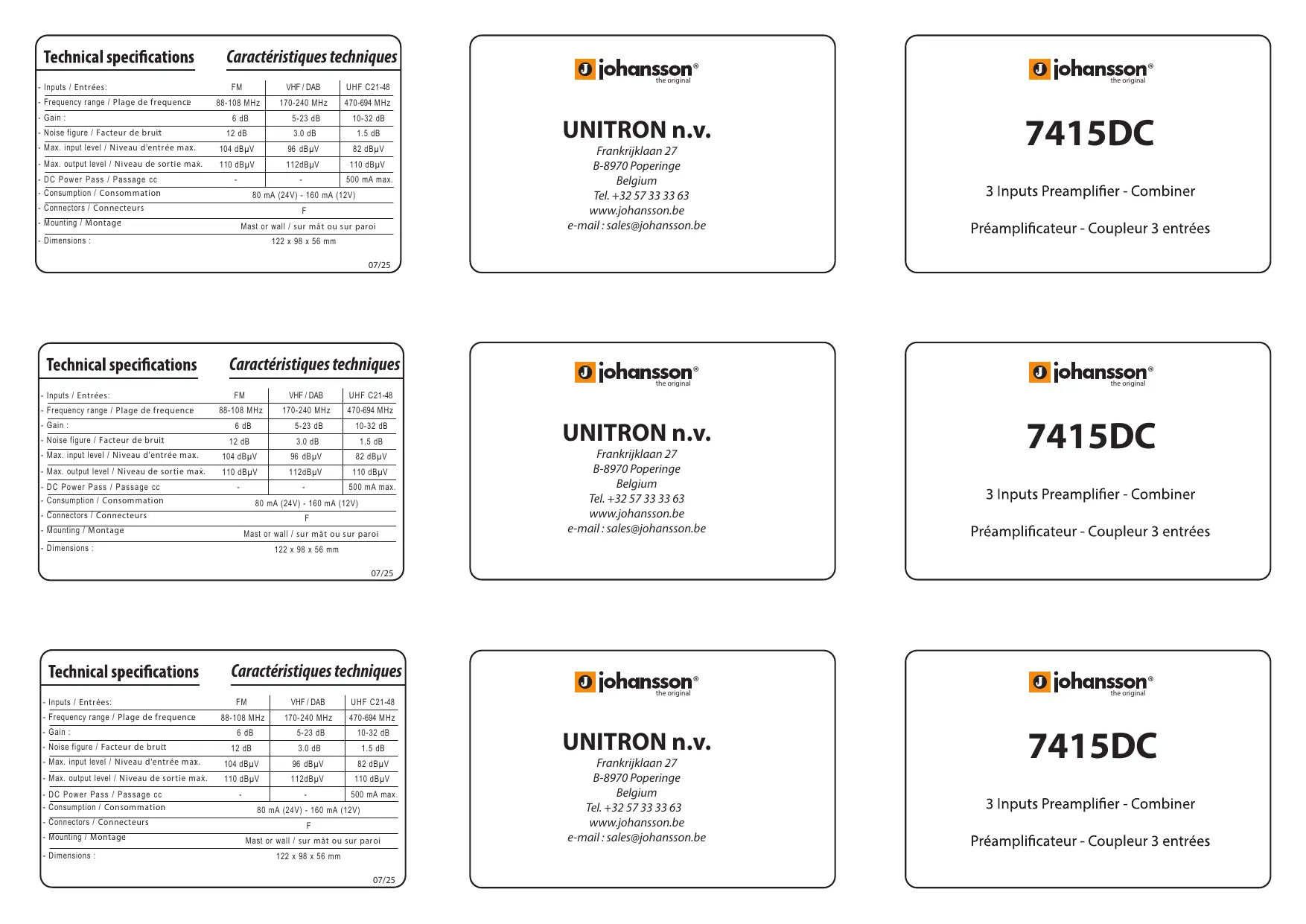 KIT7415DC - Pré-amplificateur Johansson - Notice d'utilisation et mode d'emploi gratuit
