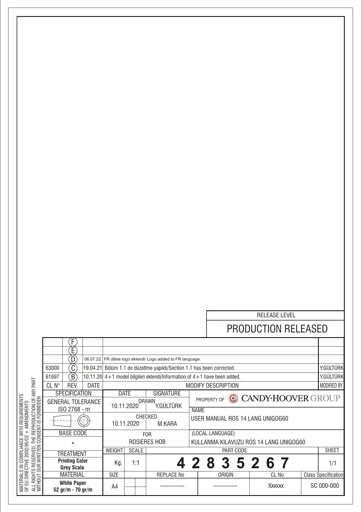 Retrouvez gratuitement la notice de l'appareil RVG6BR4SB1 ROSIERES au format PDF.