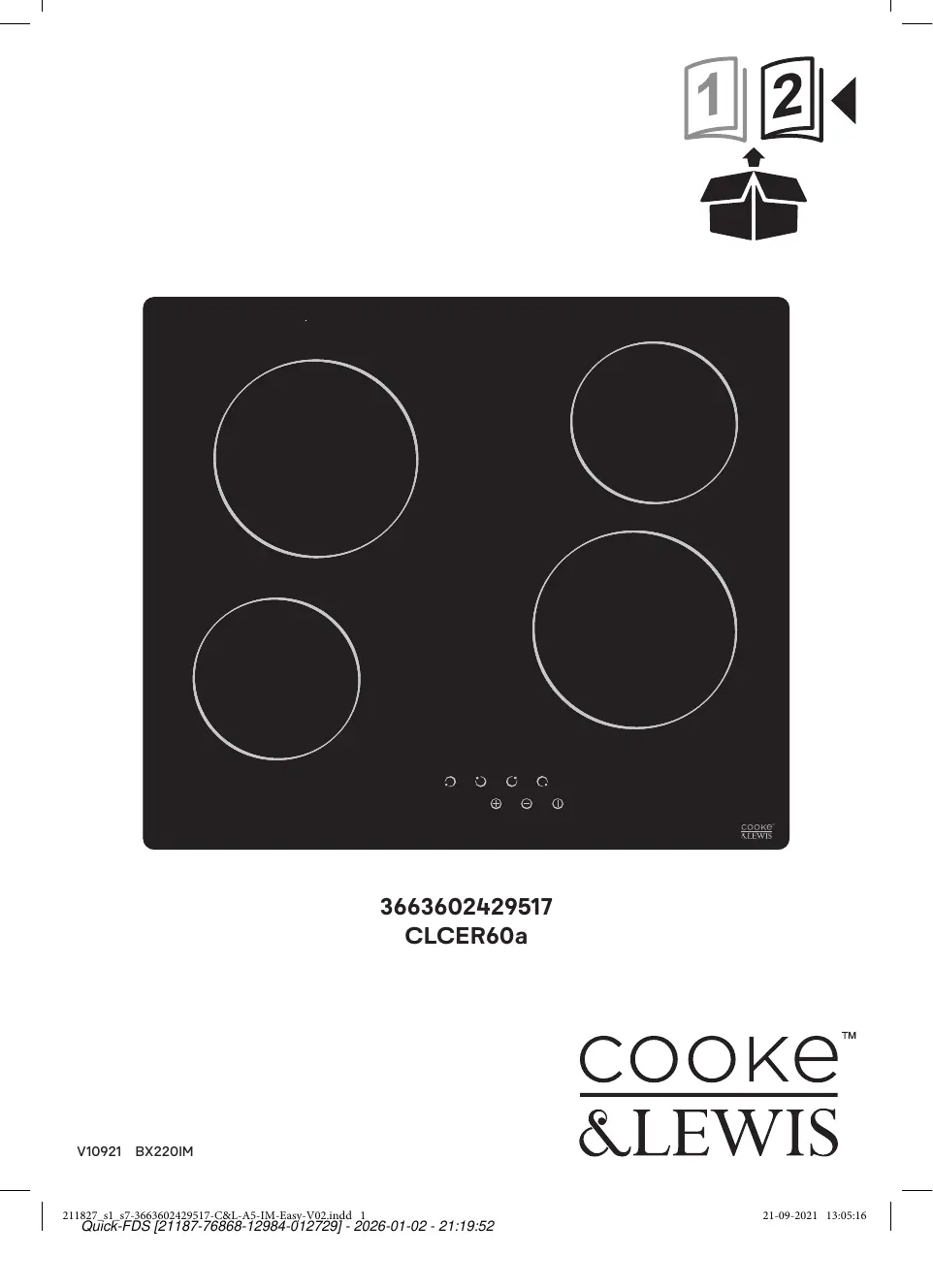 3663602429517 - Plaque de cuisson vitrocéramique COOKE & LEWIS - Notice d'utilisation et mode d'emploi gratuit