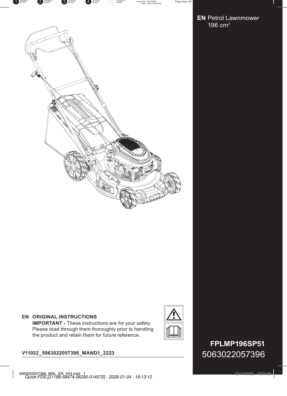 FPLMP196SP51 - Tondeuse thermique BRICO DEPOT - Notice d'utilisation et mode d'emploi gratuit