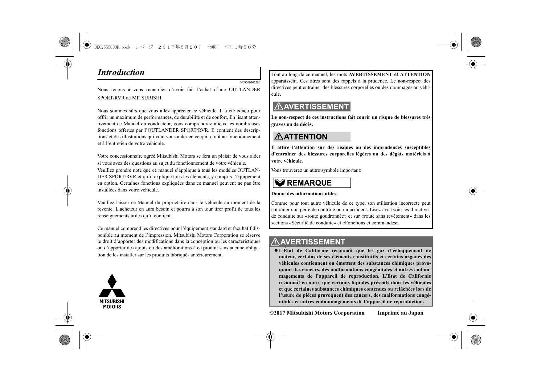 RVR Phase 4 (2016-2020) - Automobile MITSUBISHI - Notice d'utilisation et mode d'emploi gratuit