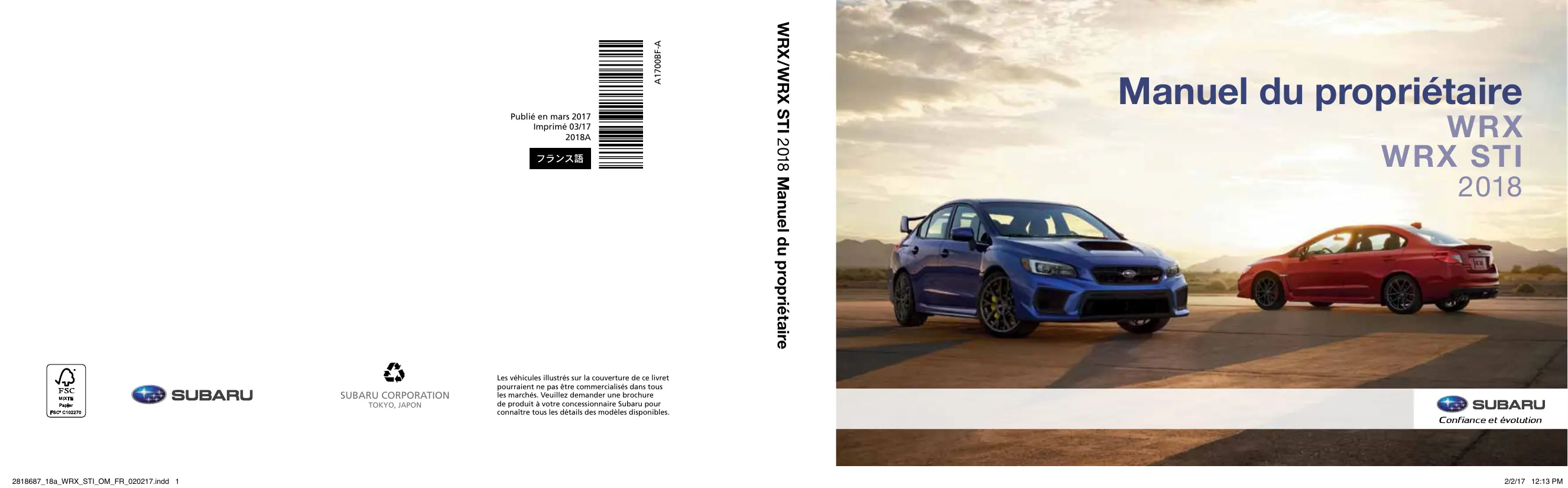 WRX - WRX STI (2018) - Automobile SUBARU - Notice d'utilisation et mode d'emploi gratuit