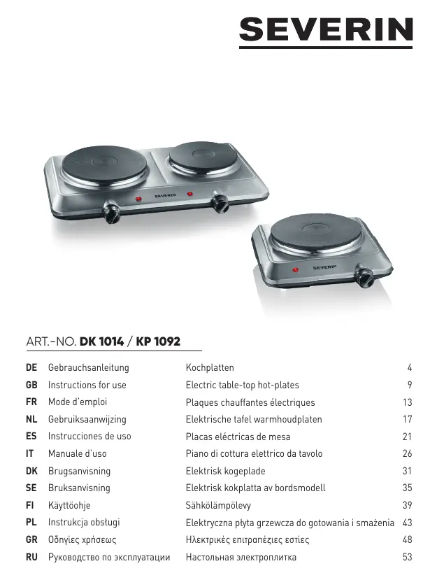 DK1014 - Rechaud SEVERIN - Notice d'utilisation et mode d'emploi gratuit