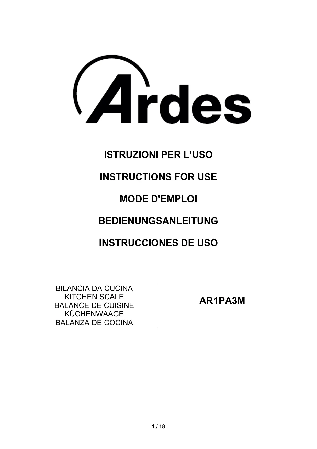 AR1PA3M - Balance de cuisine ARDES - Notice d'utilisation et mode d'emploi gratuit